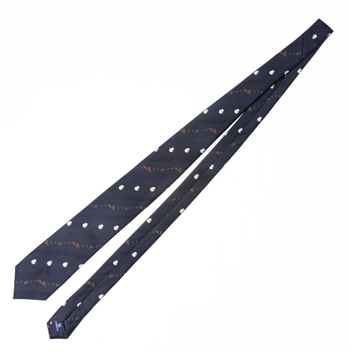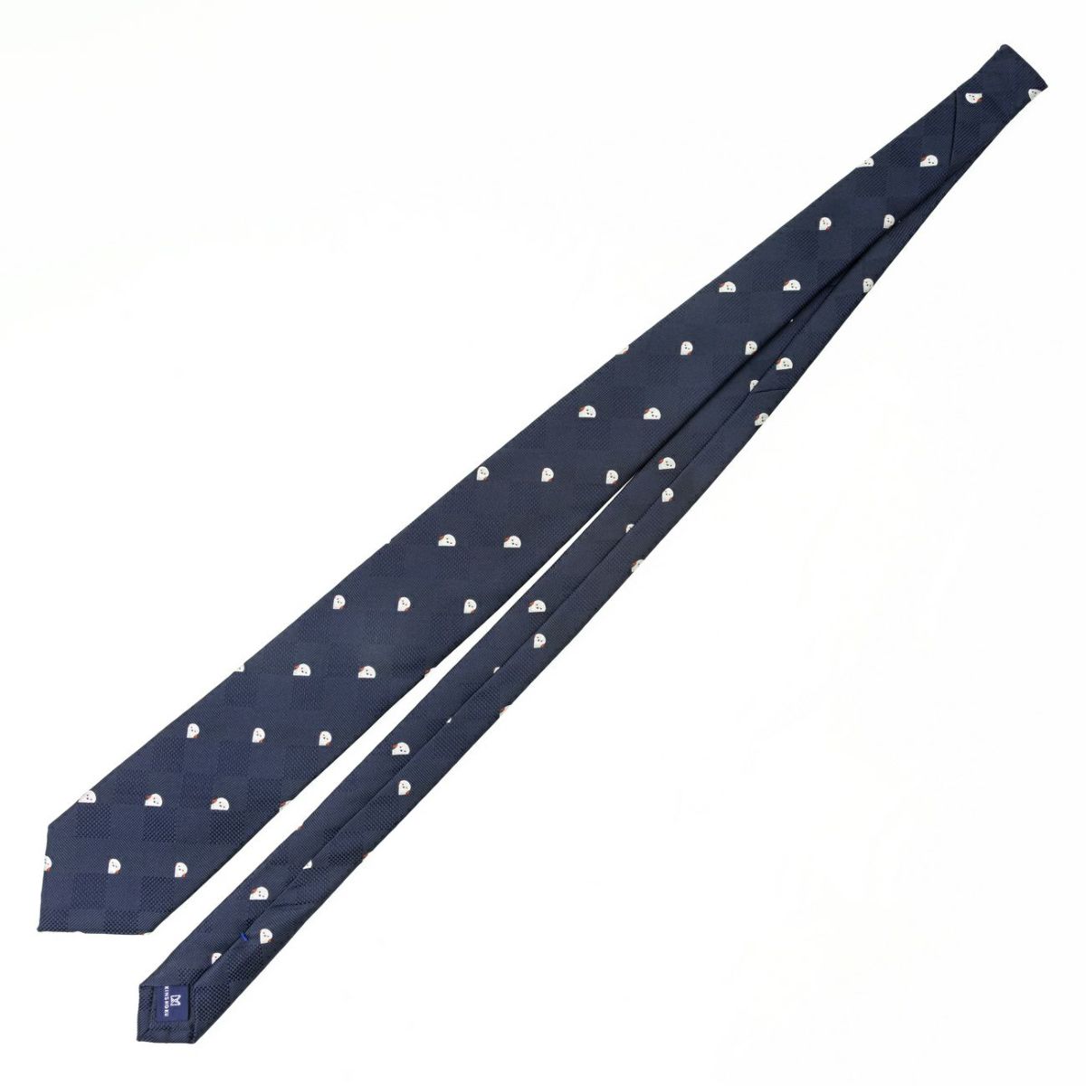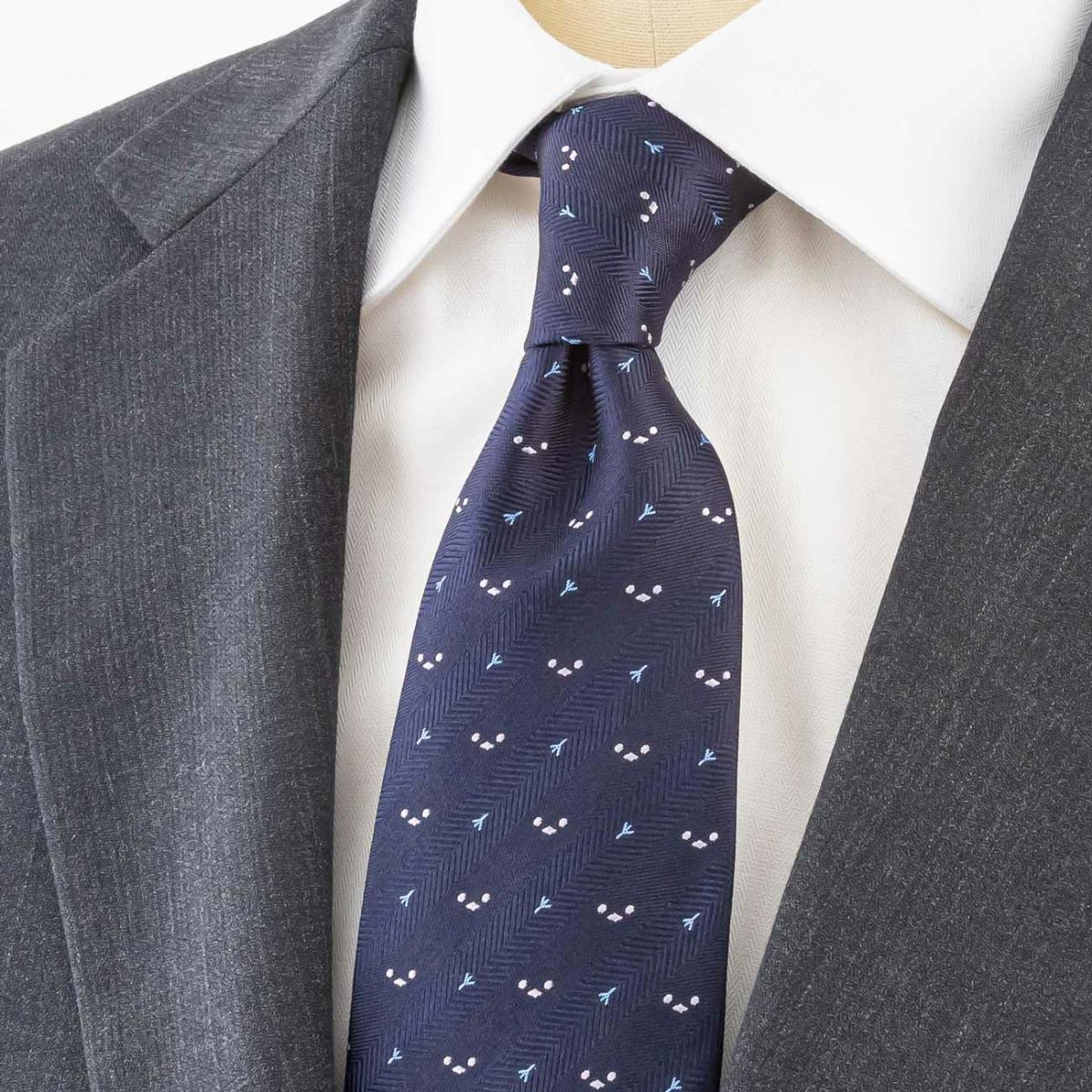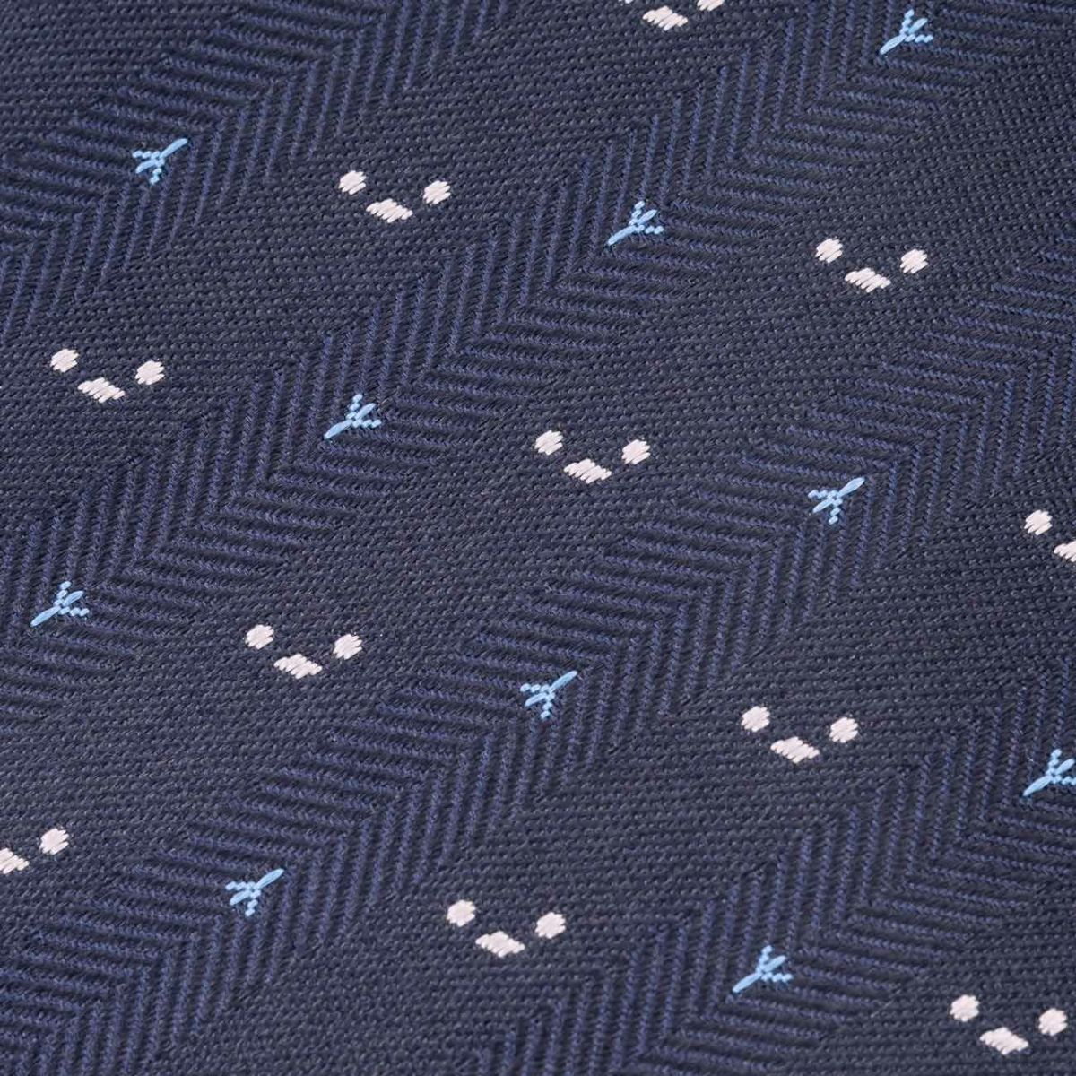 KINSHOKUネクタイ ほっこりシマエナガモチーフヘリンボン・ネイビー