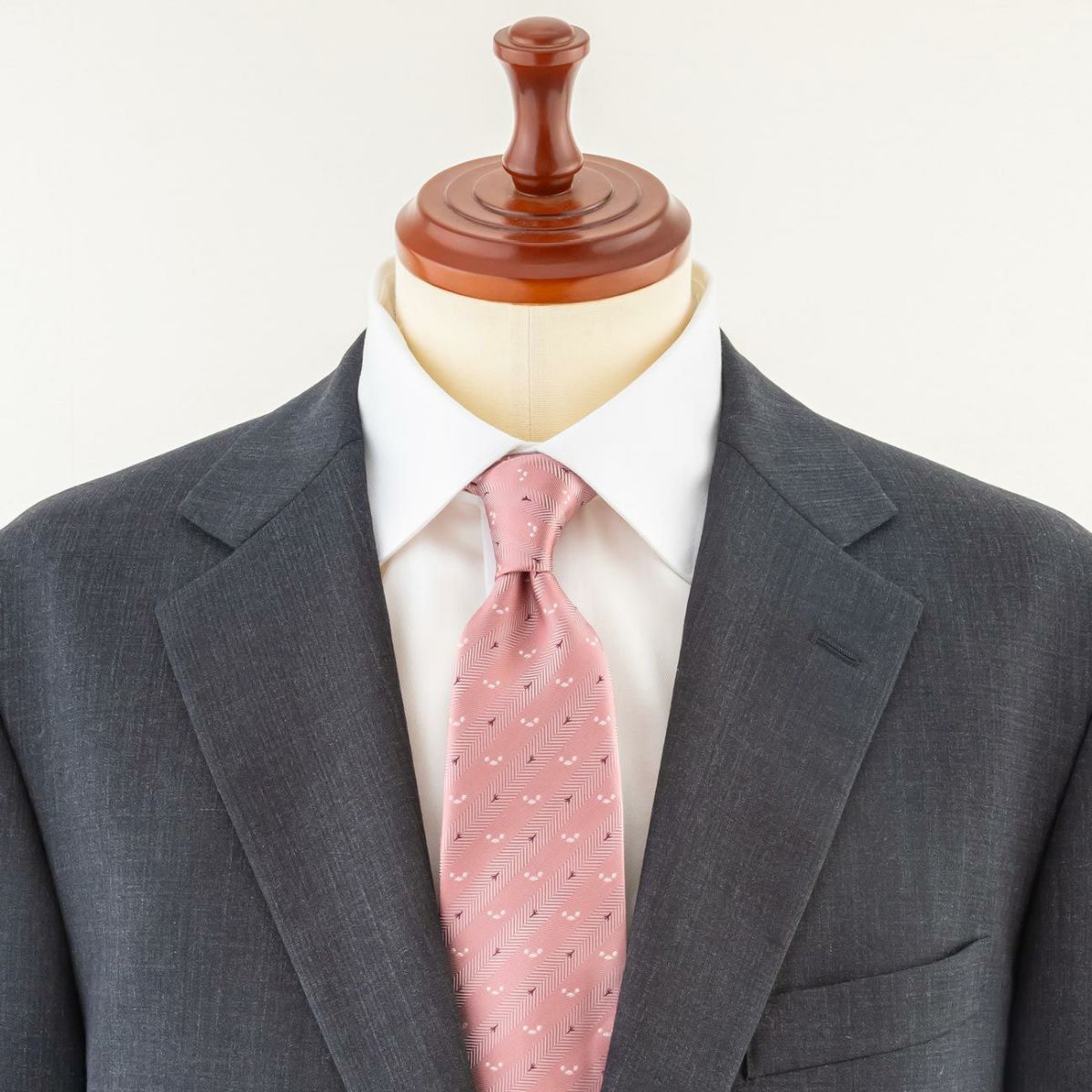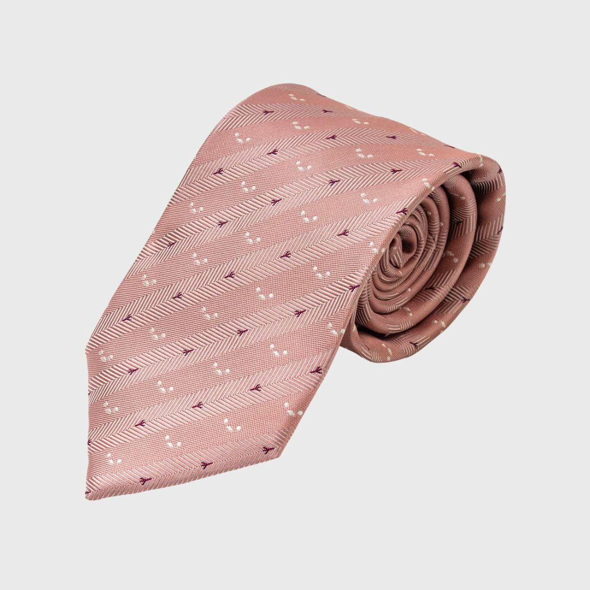 KINSHOKUネクタイ ほっこりシマエナガモチーフヘリンボン・ピンク
