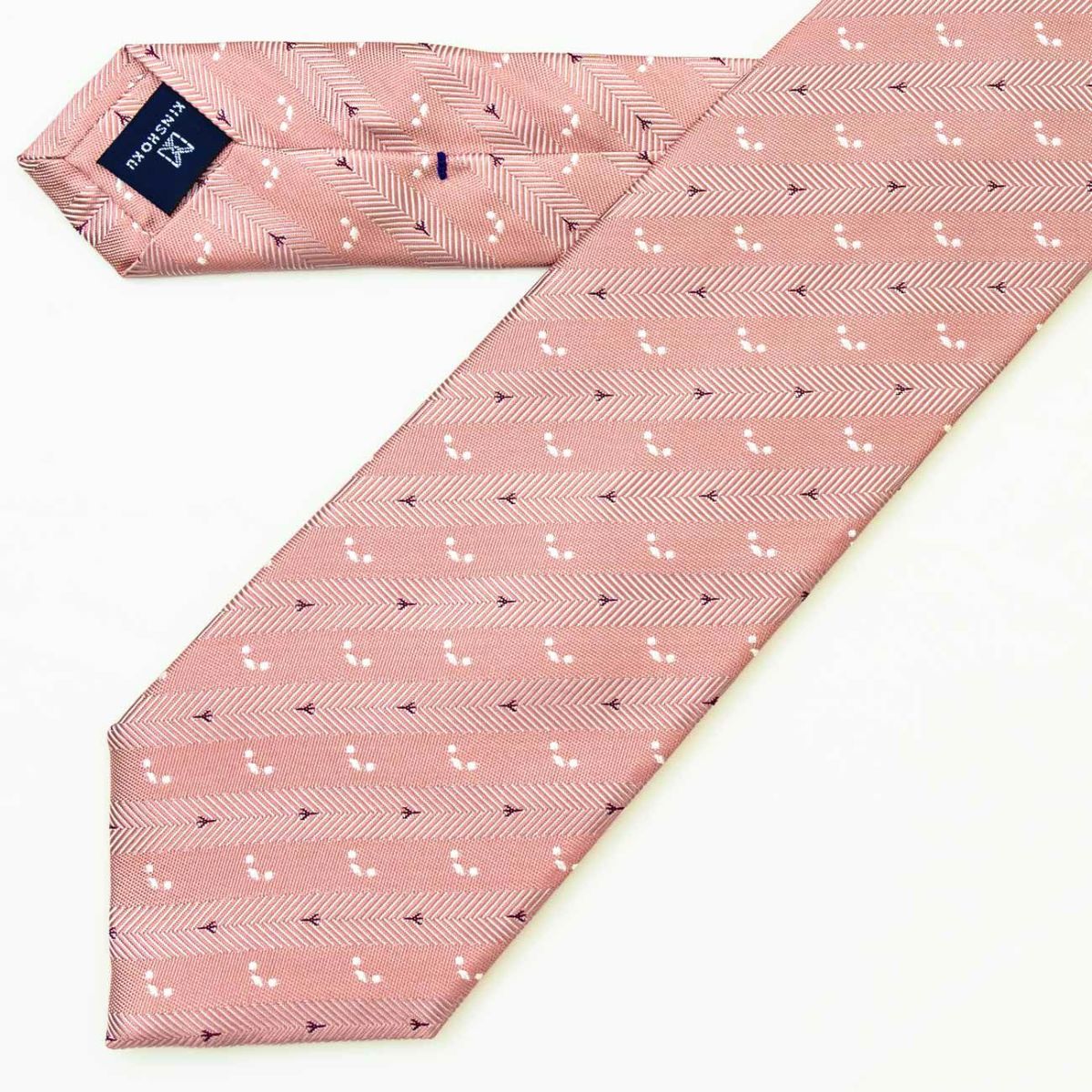 KINSHOKUネクタイ シマエナガモチーフヘリンボン・ピンク