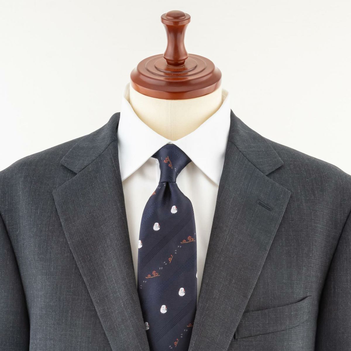 KINSHOKUネクタイ シマエナガモチーフワンポイント・ベージュ