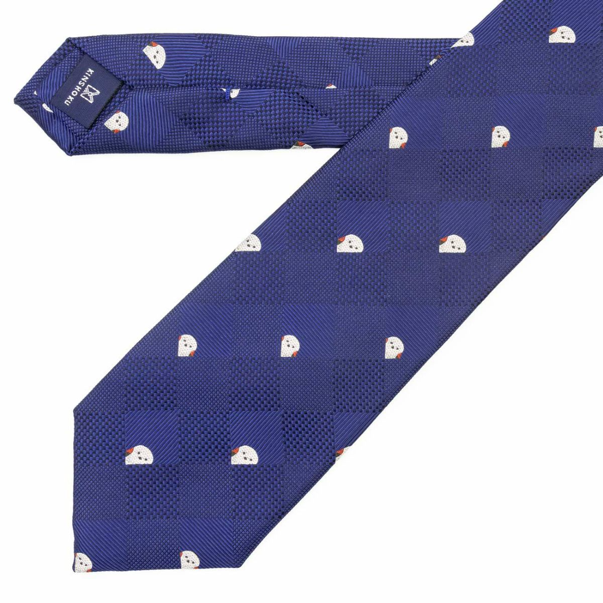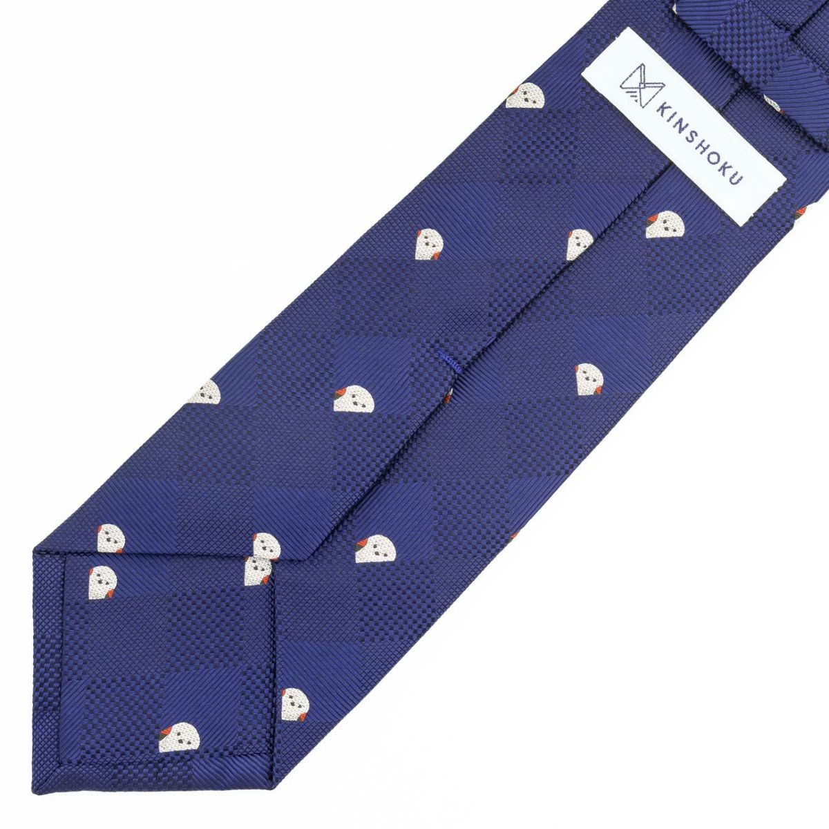 KINSHOKUネクタイ もふもふシマエナガモチーフ格子チェック・ネイビー