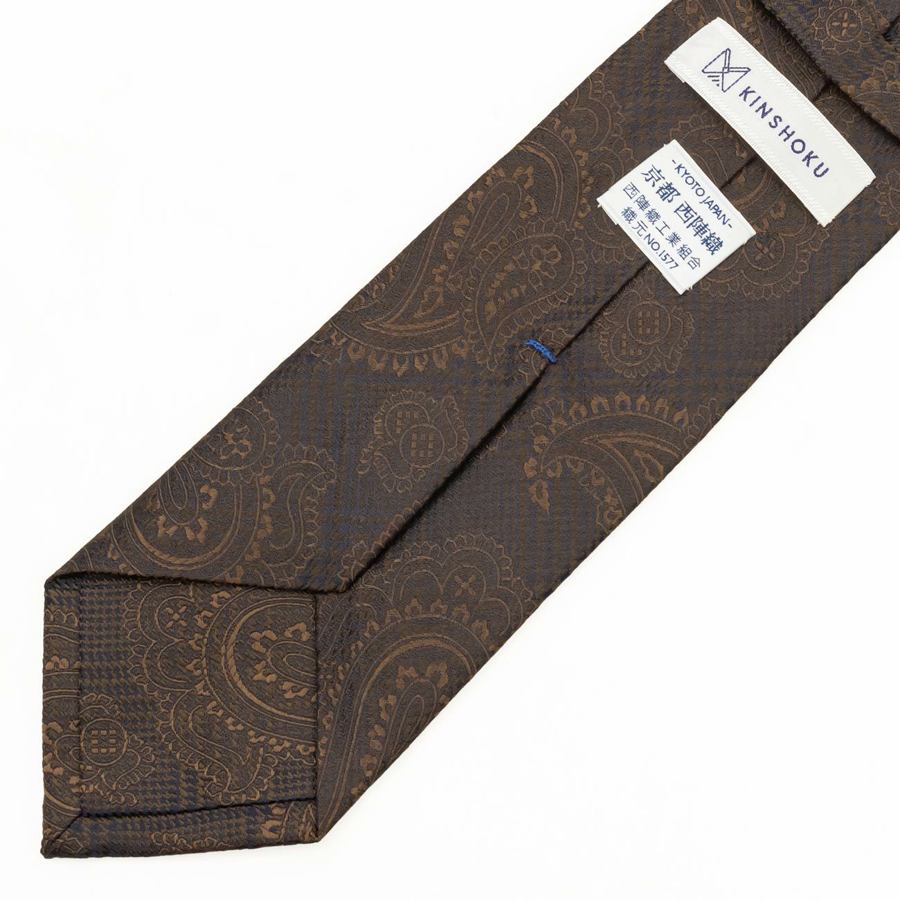 KINSHOKUネクタイ 西陣織ソリッドチェックペイズリー・ブラウン