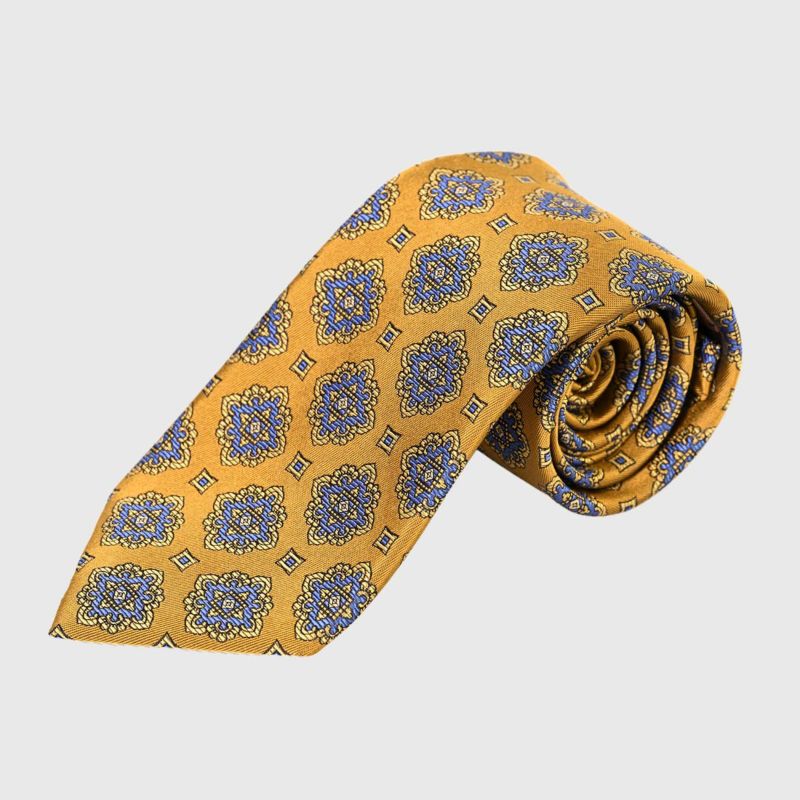 4. ROYTOUCHネクタイ プリント風クラシック小紋・ゴールド/ライトブルー