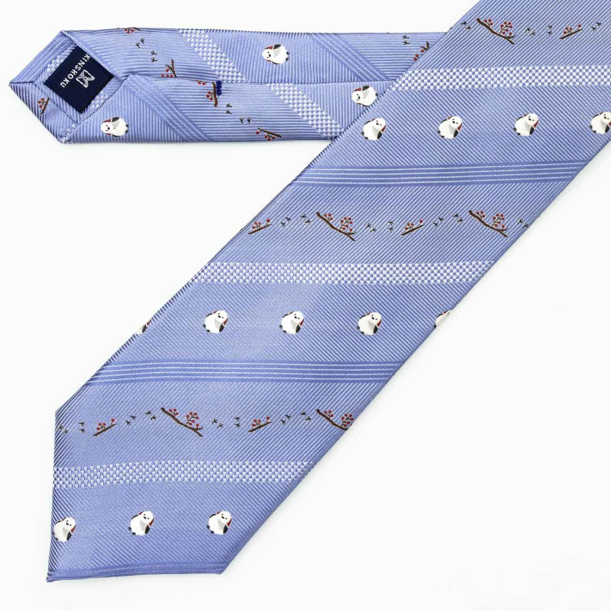 KINSHOKUネクタイ シマエナガモチーフワンポイント・ライトブルー