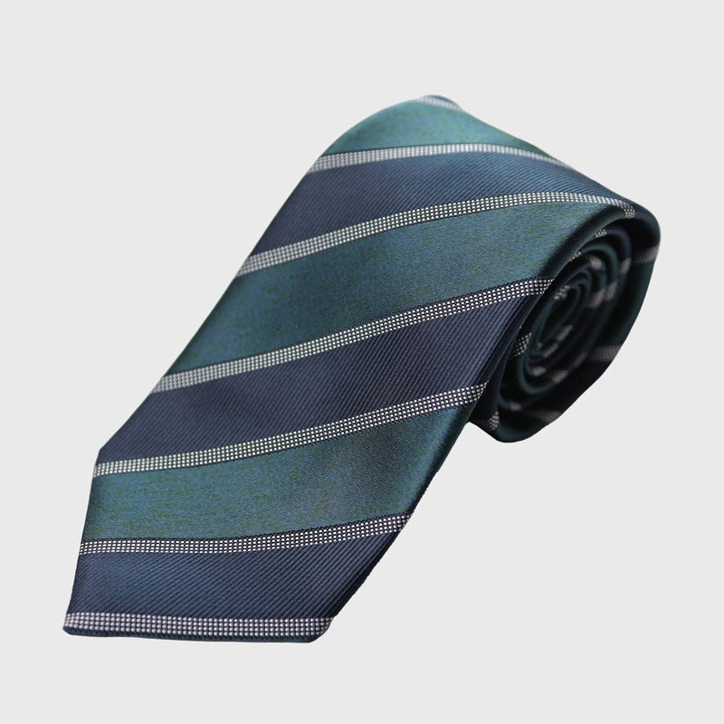 KINSHOKUネクタイ メランジステッチストライプ・ネイビー/グリーン