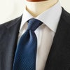 このネクタイには、「浸し染め(ひたしぞめ)」という技法の一種である「グラデーション染め」を施し、織りだけでは表現できない、やわらかで奥行きのある色の変化を作り出しています。