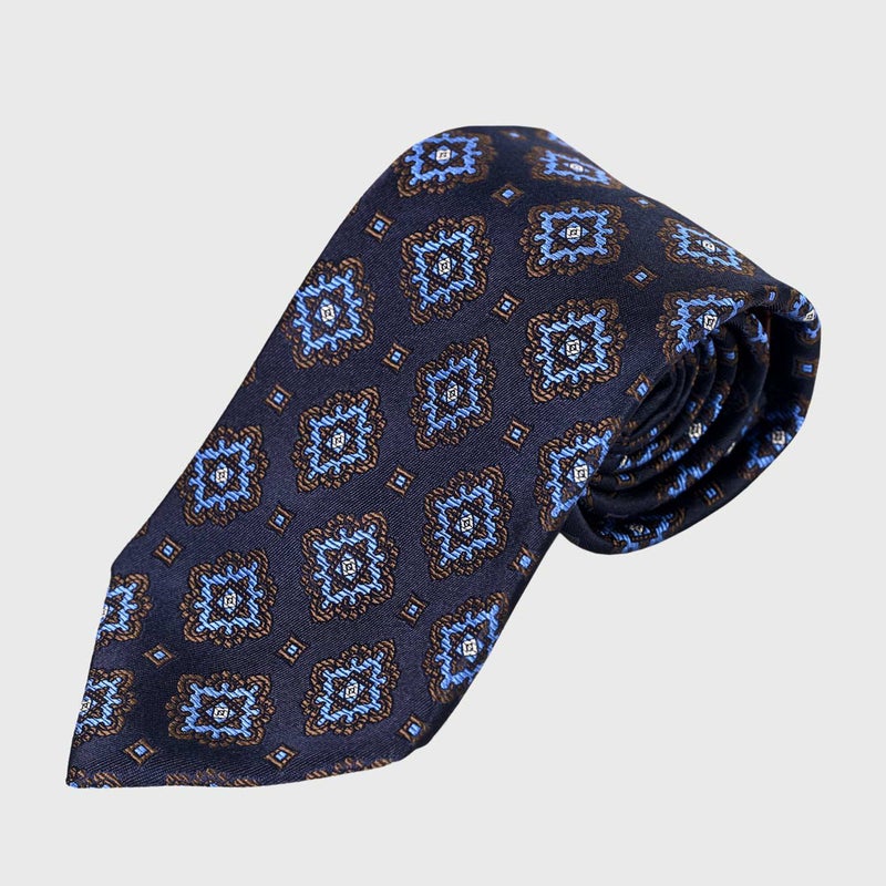 ROYTOUCHネクタイ プリント風クラシック小紋・ネイビー/ブルー