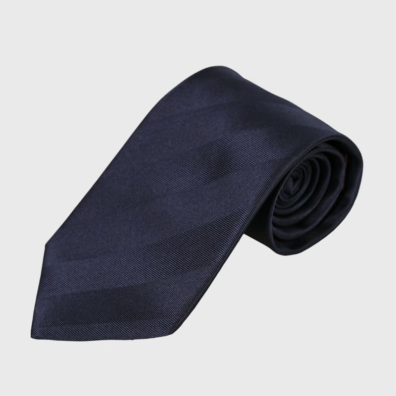 経糸にもネイビーを使うことで、柔らかな質感と光沢を表現。深みのある紺色が美しい、シンプルだからこそ生まれる高級感をお楽しみいただける一本です。