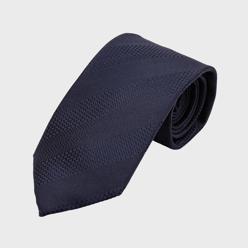 シンプルでありながらも、しっかりとした凹凸があることで生まれる高級感が特徴的なネクタイです。