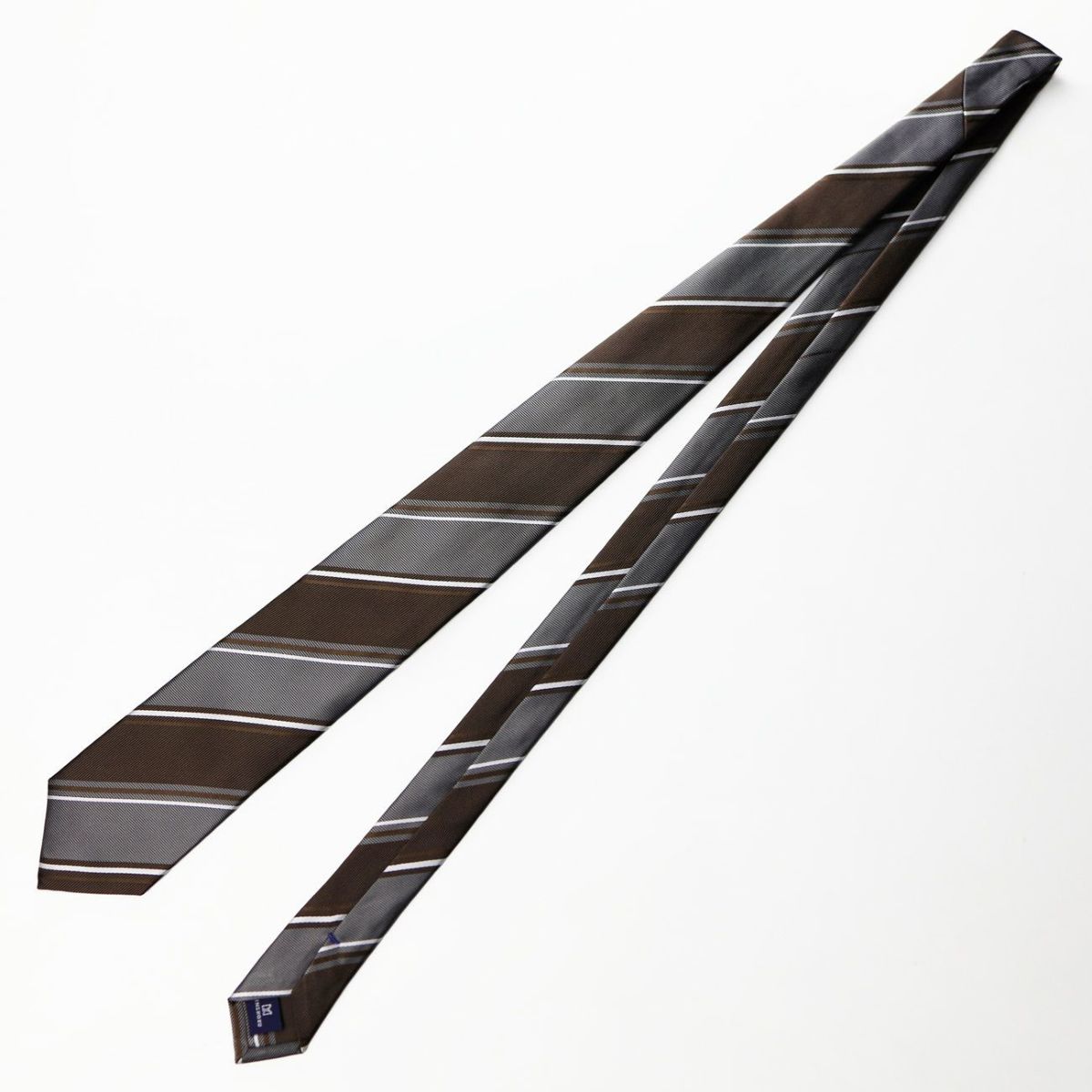 特にシルクを100%使用したネクタイは上質な光沢感があり、織組織の凹凸を品よく強調した重厚な雰囲気を作ります。
