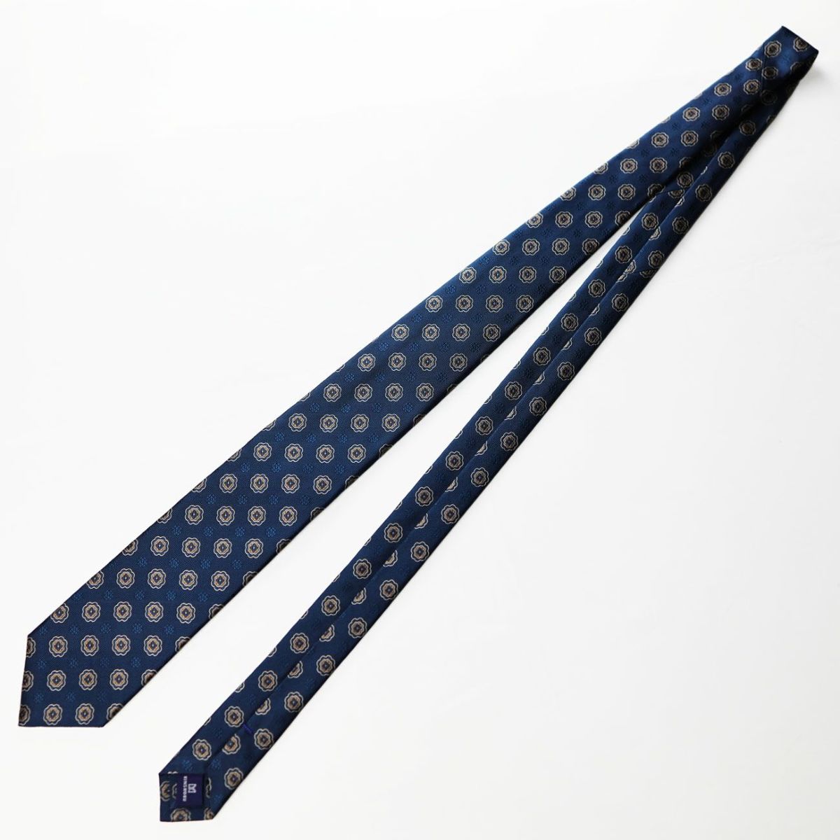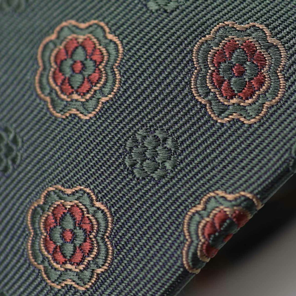 細部までこだわりを凝らしたネクタイは、シルクの上質な光沢感とジャカードの織組織が活き、胸元を美しく彩ります。