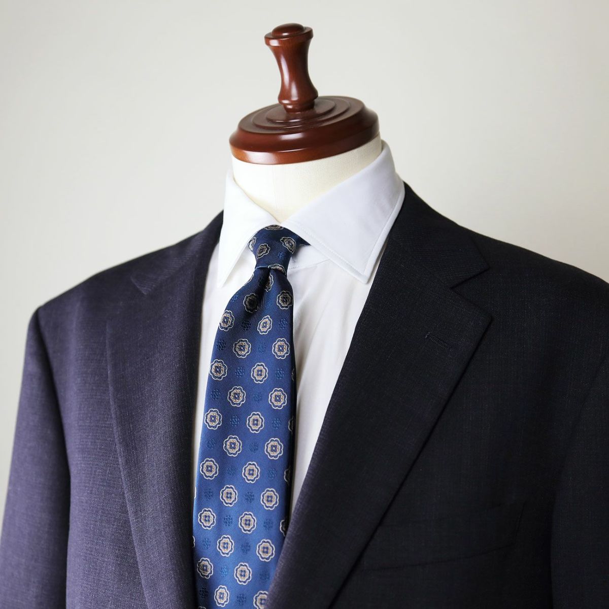 色で柄を作るネクタイではなく、織り目で柄を作るネクタイは、世代問わずベーシックに使いやすいアイテムです。