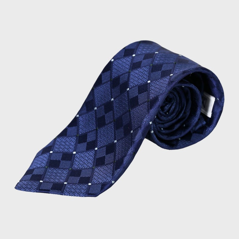KINSHOKUネクタイ 格子風小紋・ブルー