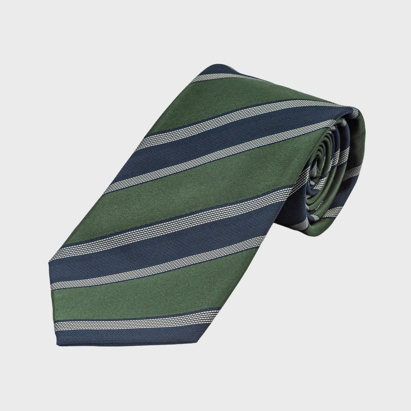 ベーシックなストライプにサテンの艶が美しい一本。