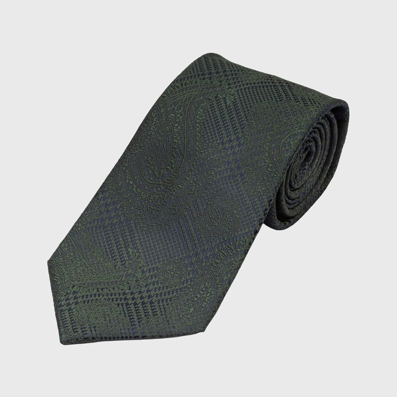 KINSHOKUネクタイ 西陣織ソリッドチェックペイズリー・グリーン
