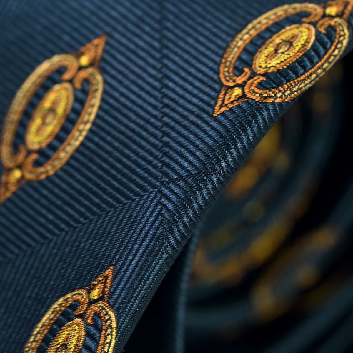 ROYTOUCHネクタイ メダリオン・ネイビー/ブルー、ゴールド