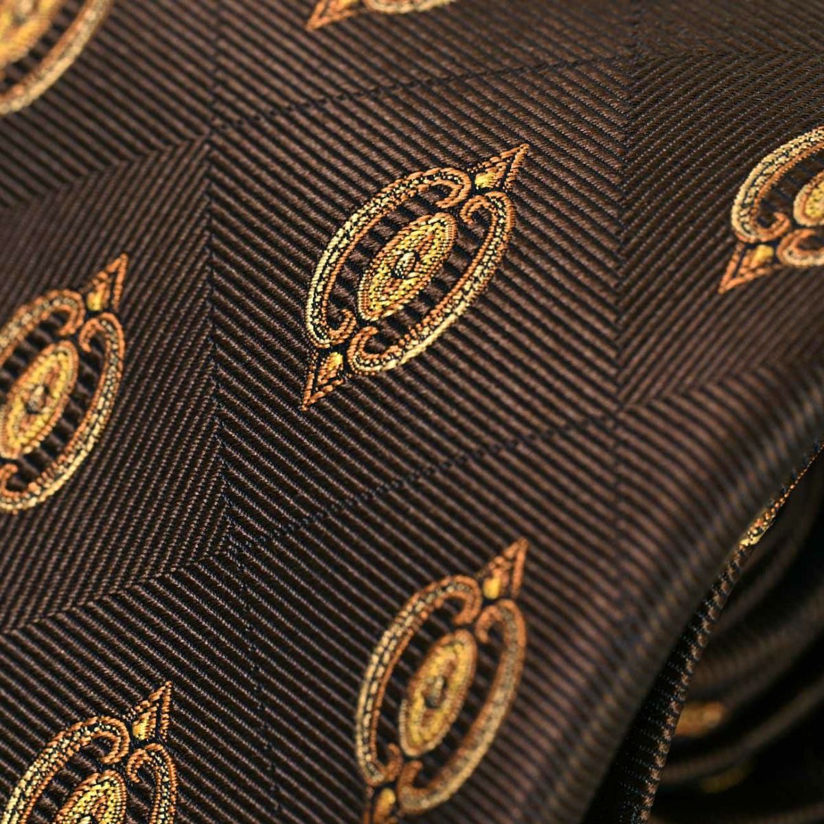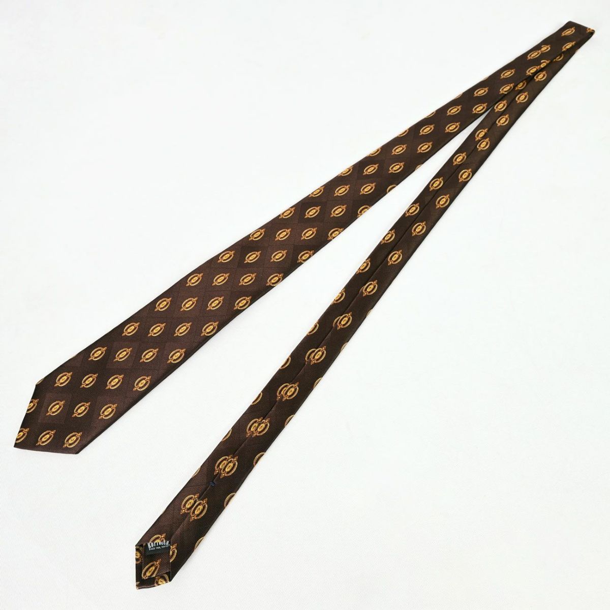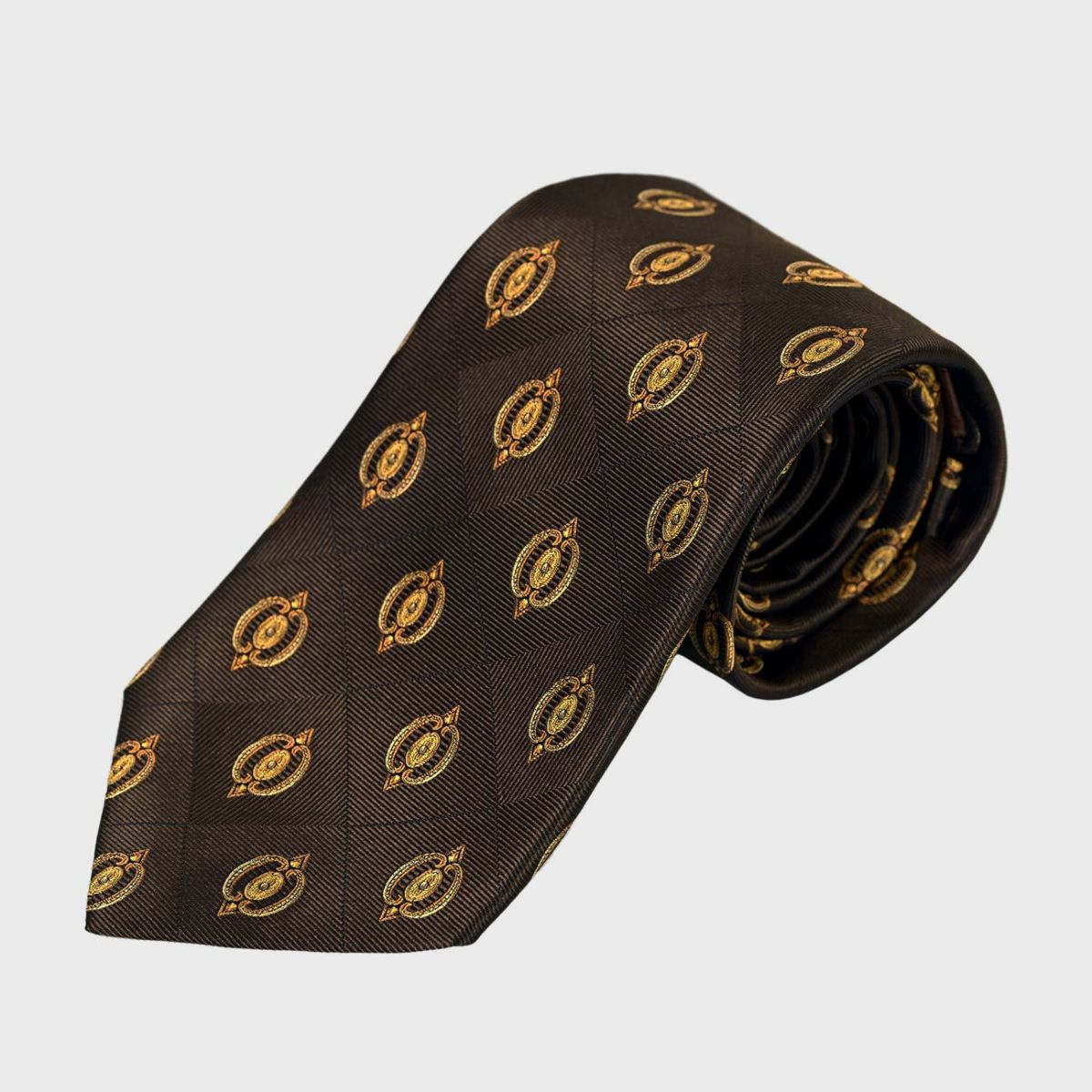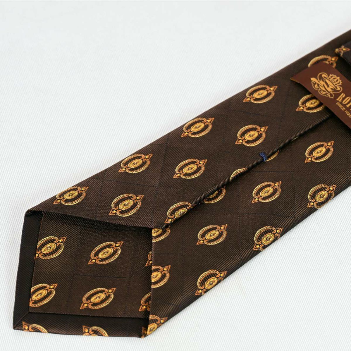 ROYTOUCHネクタイ 格子メダリオン・ブラウン/ゴールド