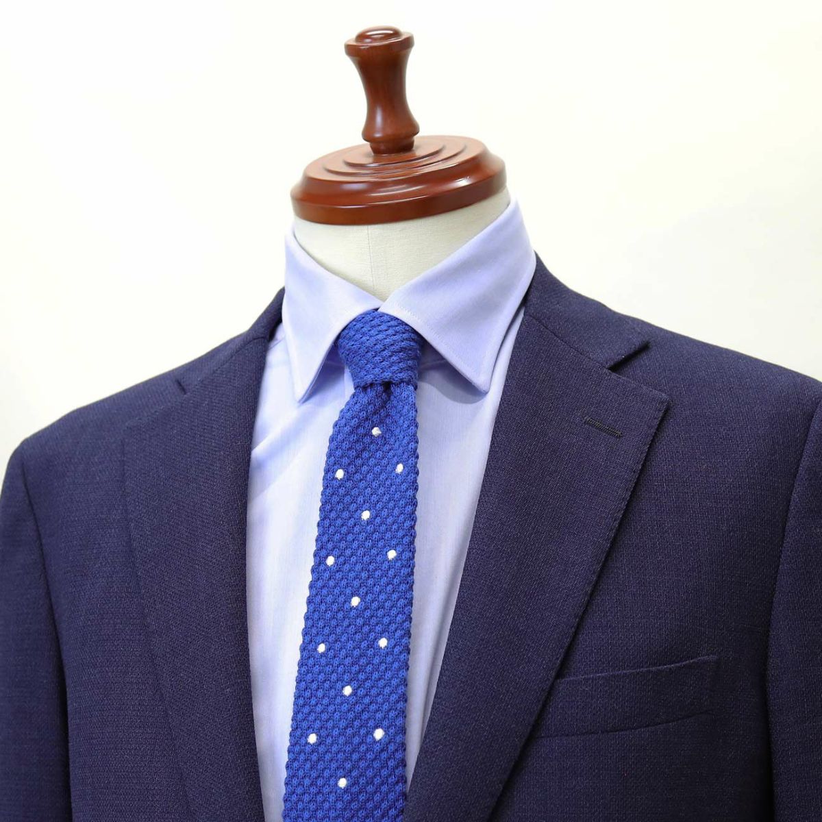 KINSHOKUネクタイ 海島綿 Sea Island Cotton ニットタイ ドット・ブルー