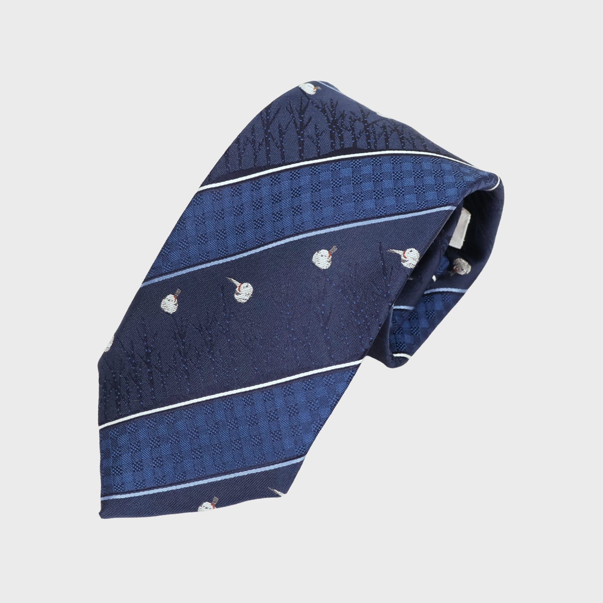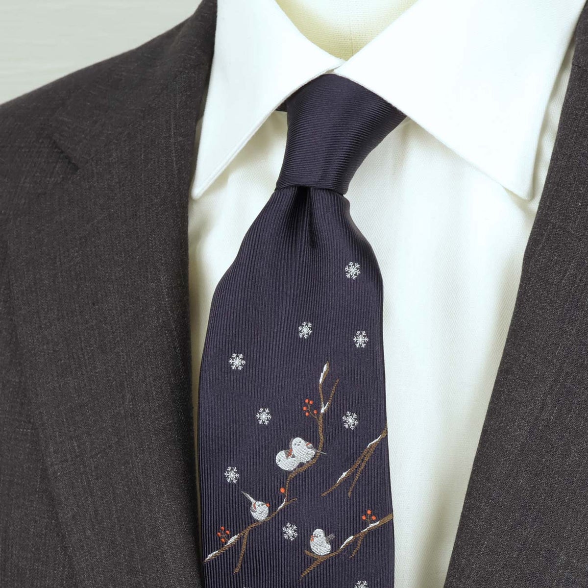 KINSHOKUネクタイ 白樺の森とシマエナガモチーフパネル・ネイビー