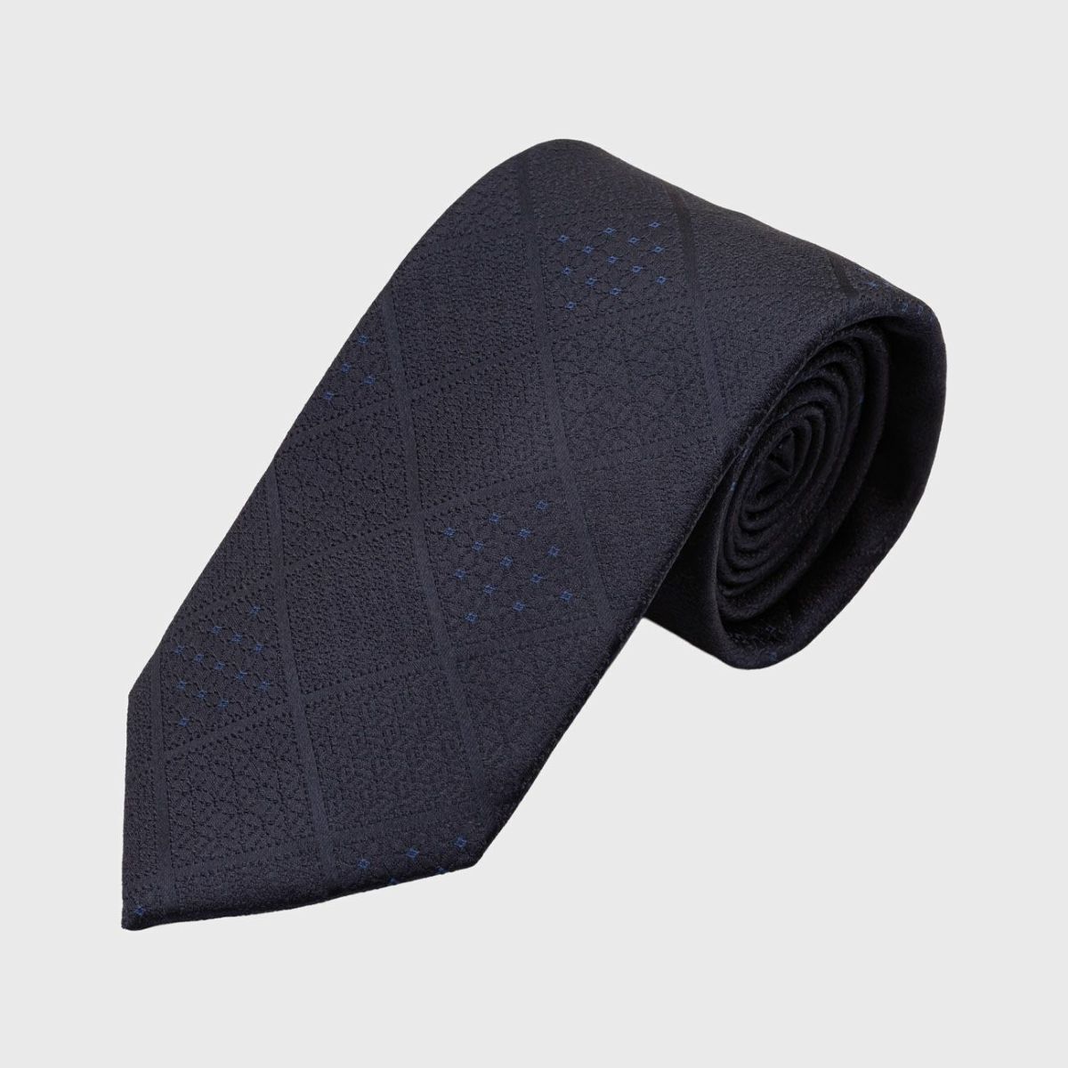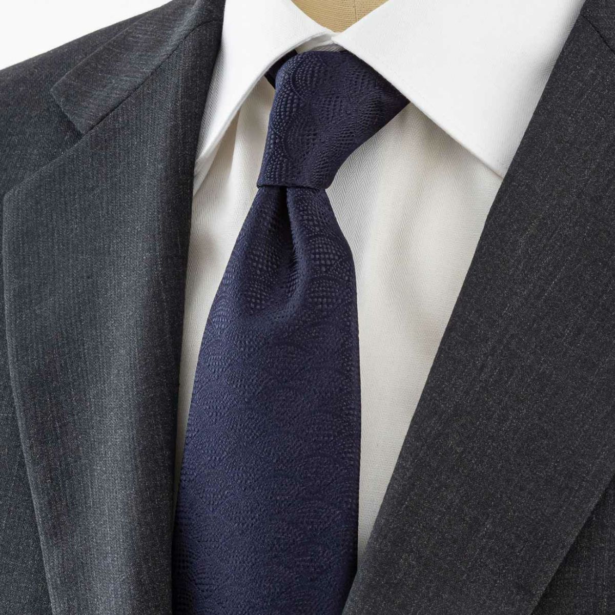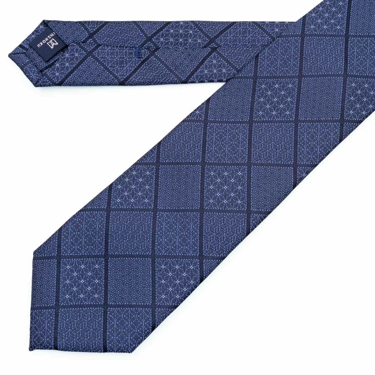 KINSHOKUネクタイ 純国産ジオメトリック青海波・ネイビー