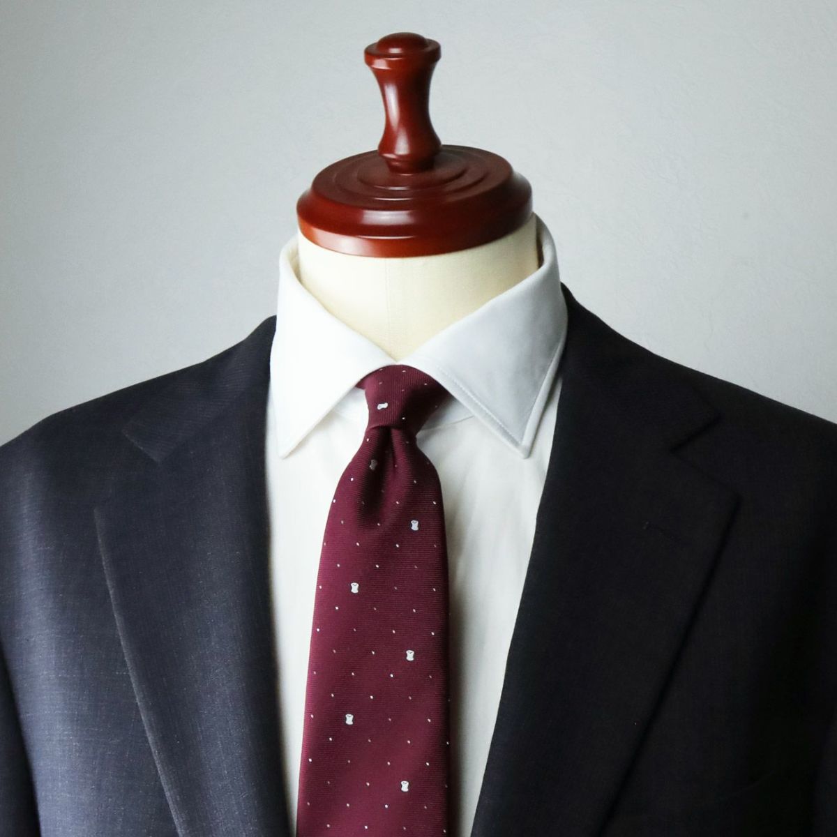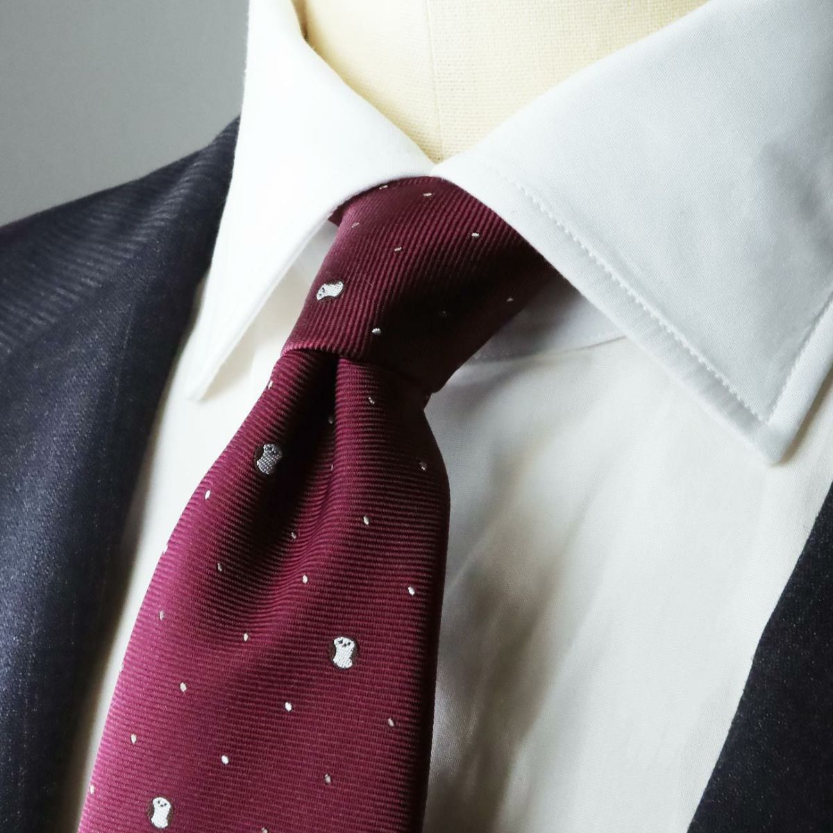 KINSHOKUネクタイ シマエナガモチーフドット・ワイン