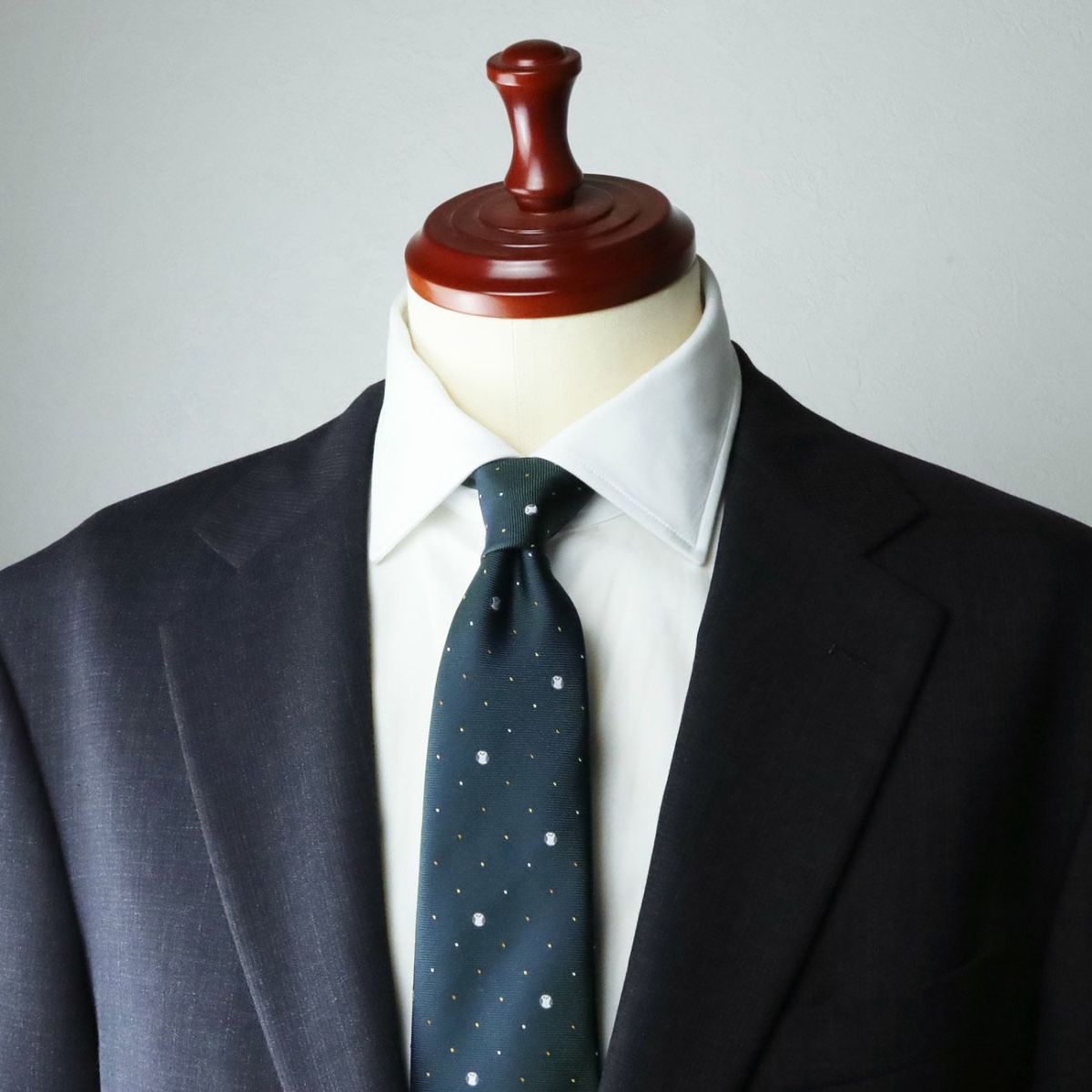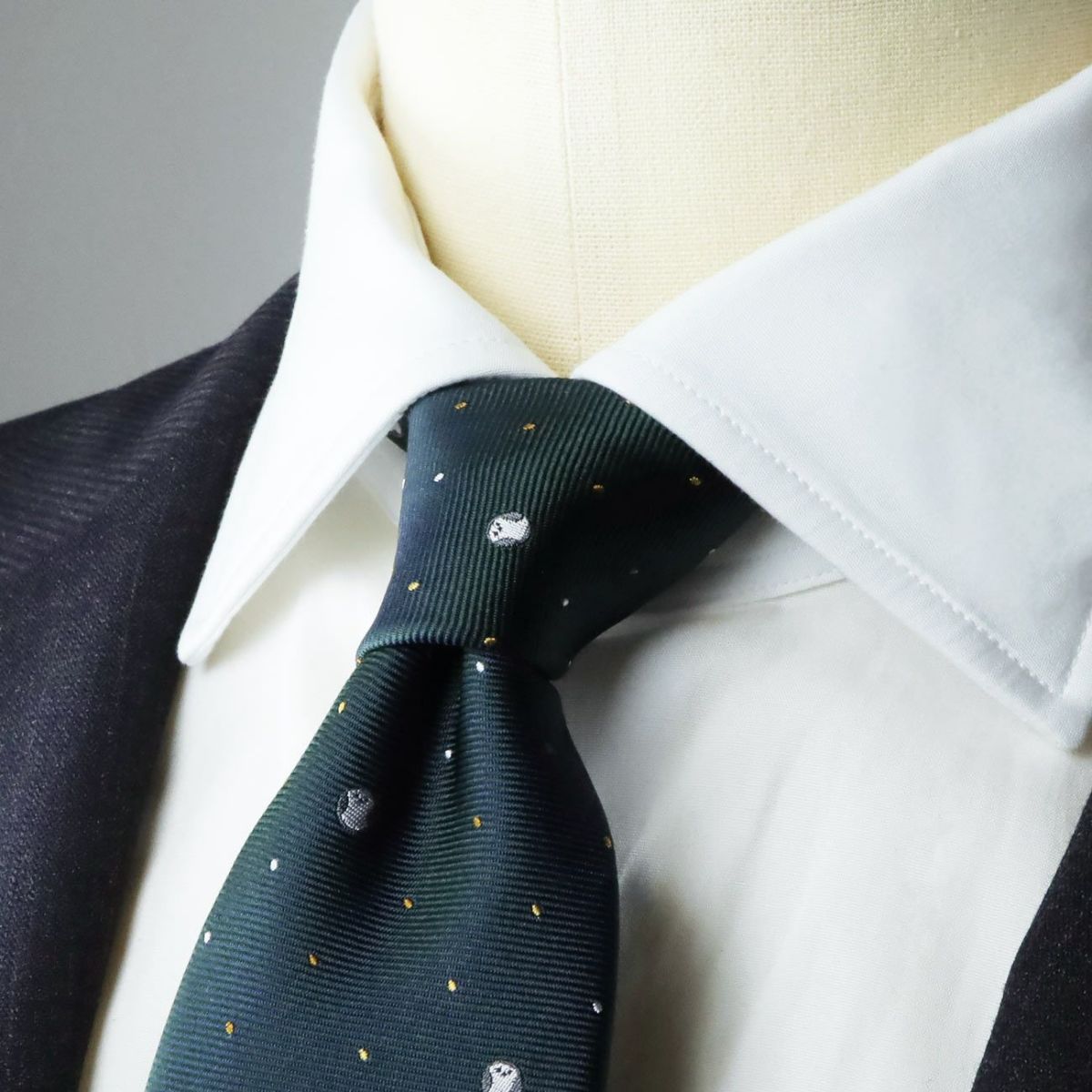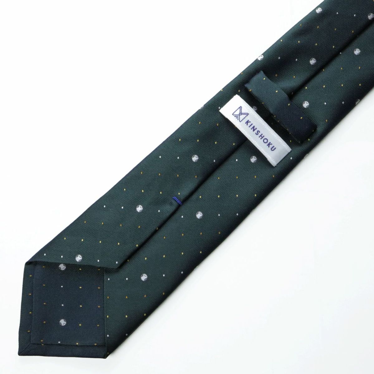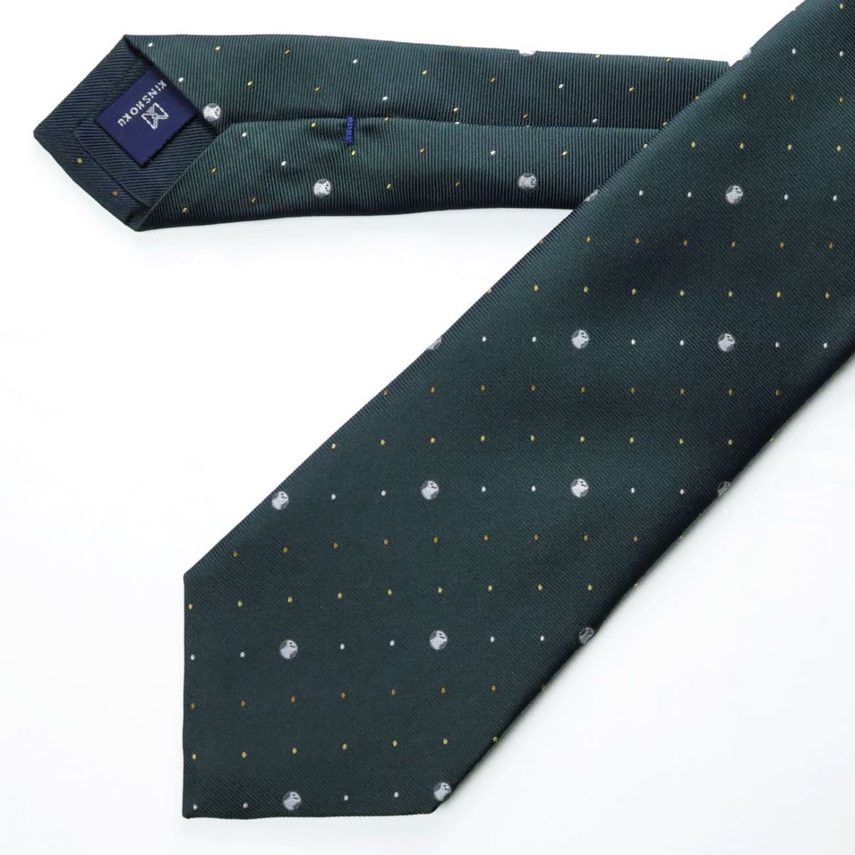 KINSHOKUネクタイ シマエナガモチーフドット・グリーン