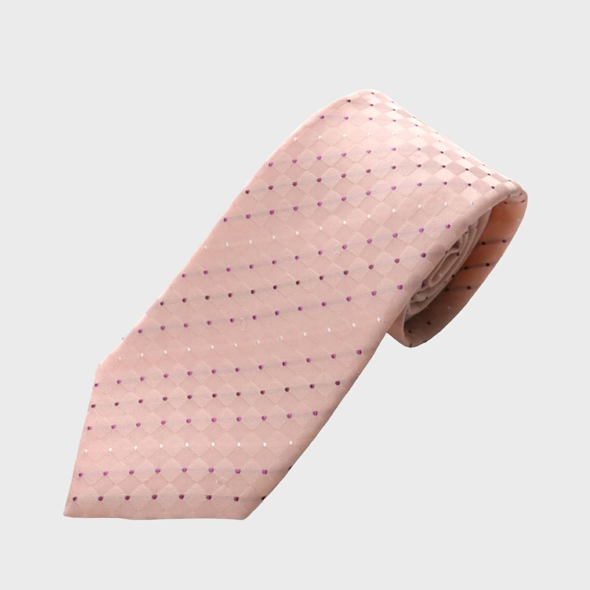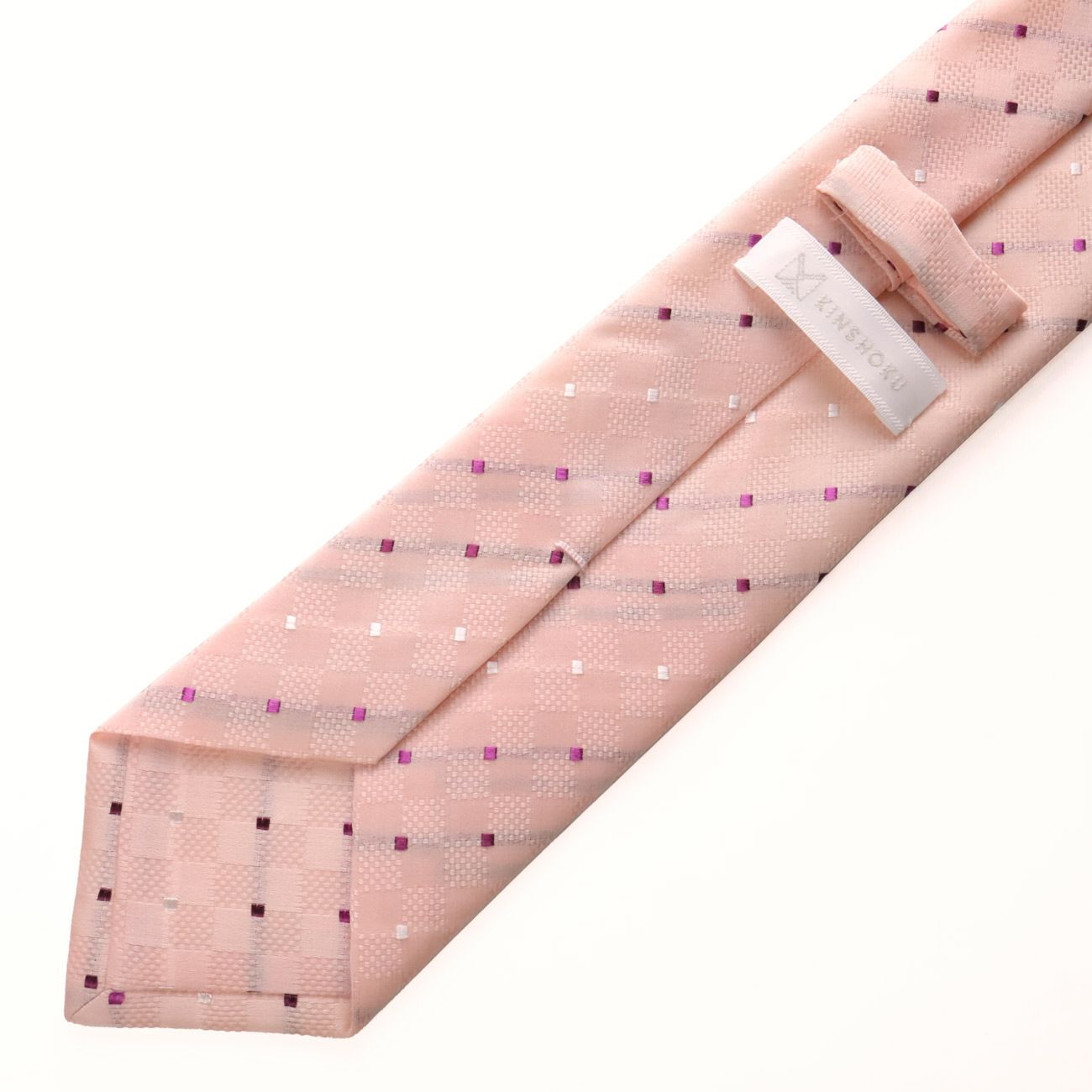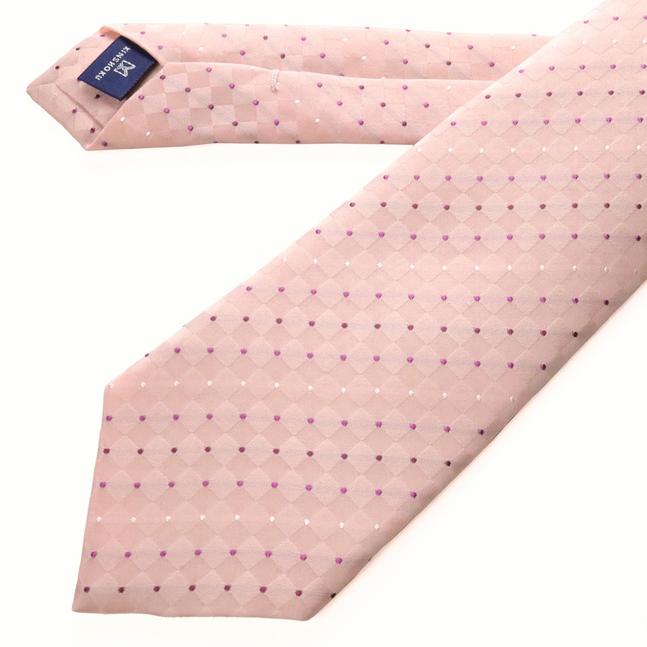 KINSHOKUネクタイ 桜染シャドー格子ドット・ピンク
