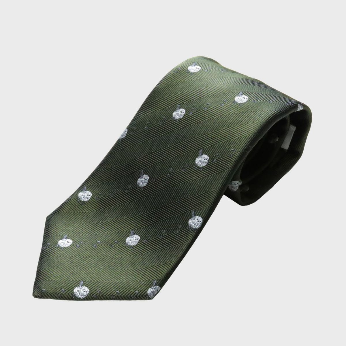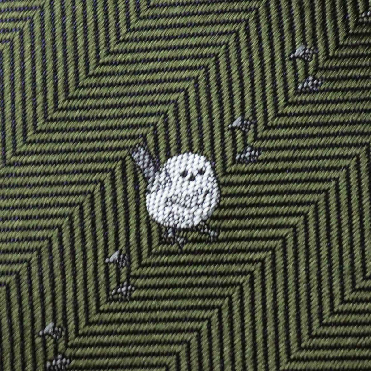 KINSHOKUネクタイ シマエナガモチーフヘリンボン・カーキ