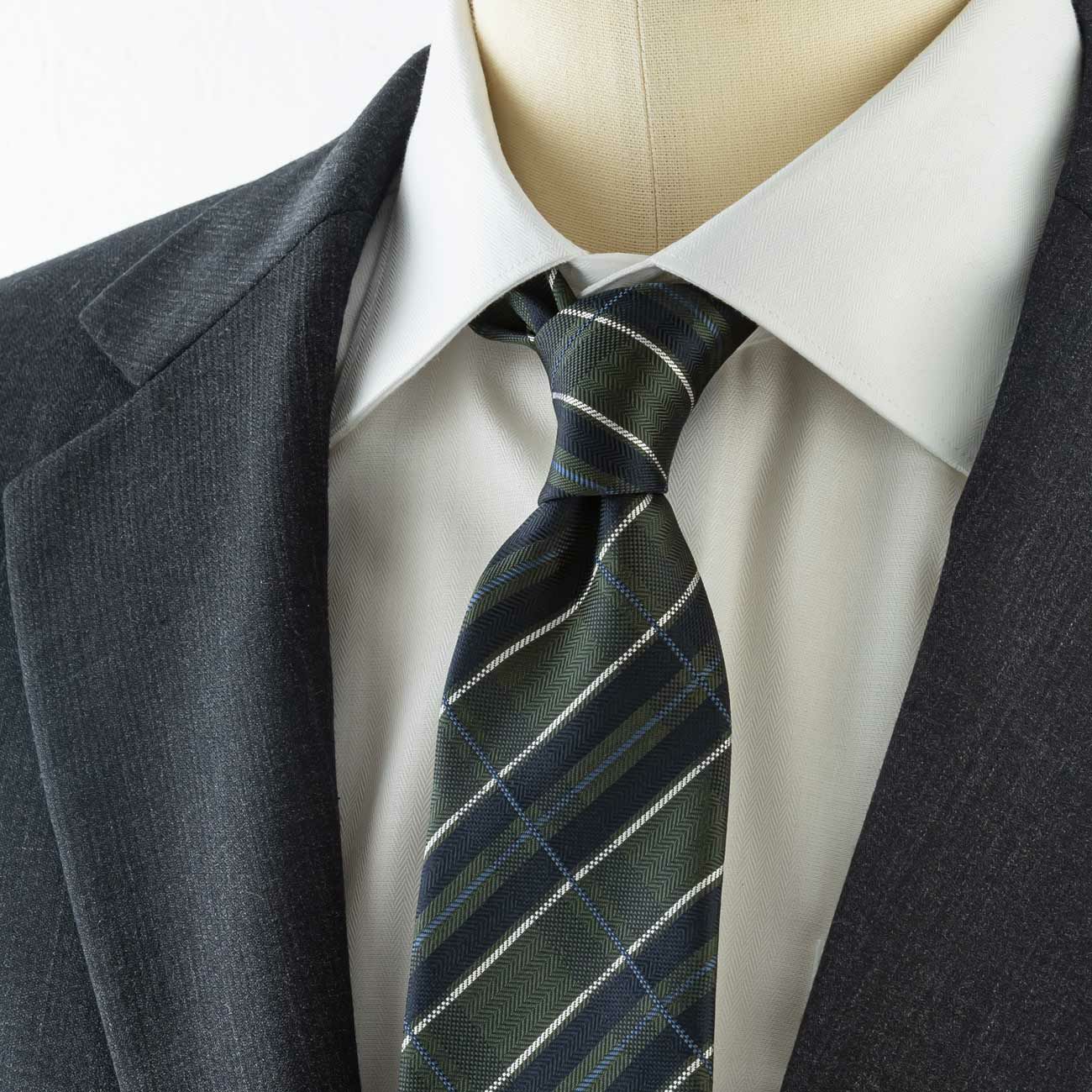 KINSHOKUネクタイ 西陣織ヘリンボンチェック・グリーン
