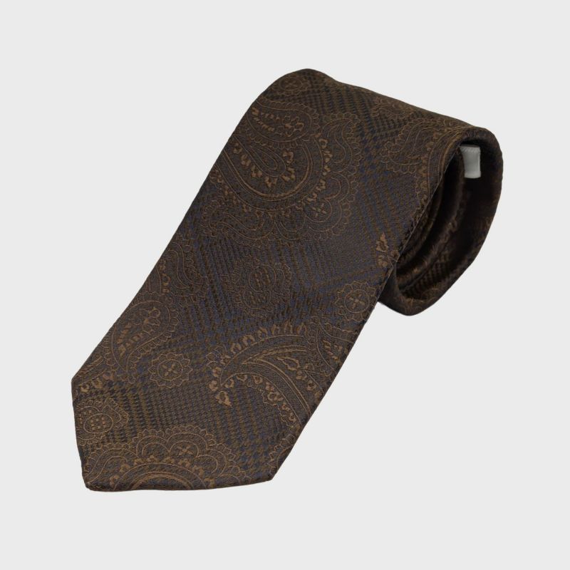 KINSHOKUネクタイ 西陣織ソリッドチェックペイズリー・ブラウン