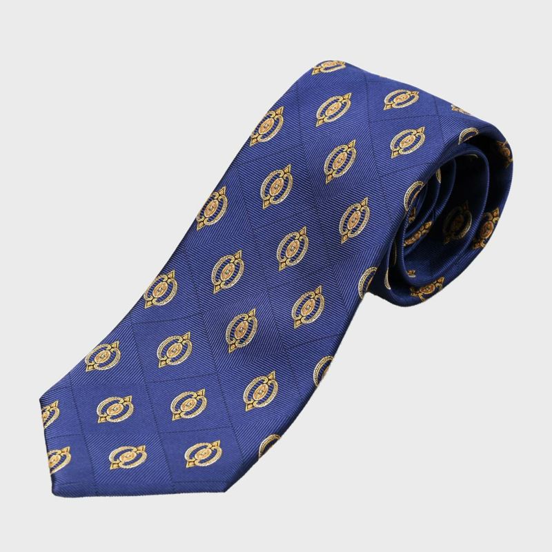 ROYTOUCHネクタイ 格子メダリオン・ブルー/ゴールド