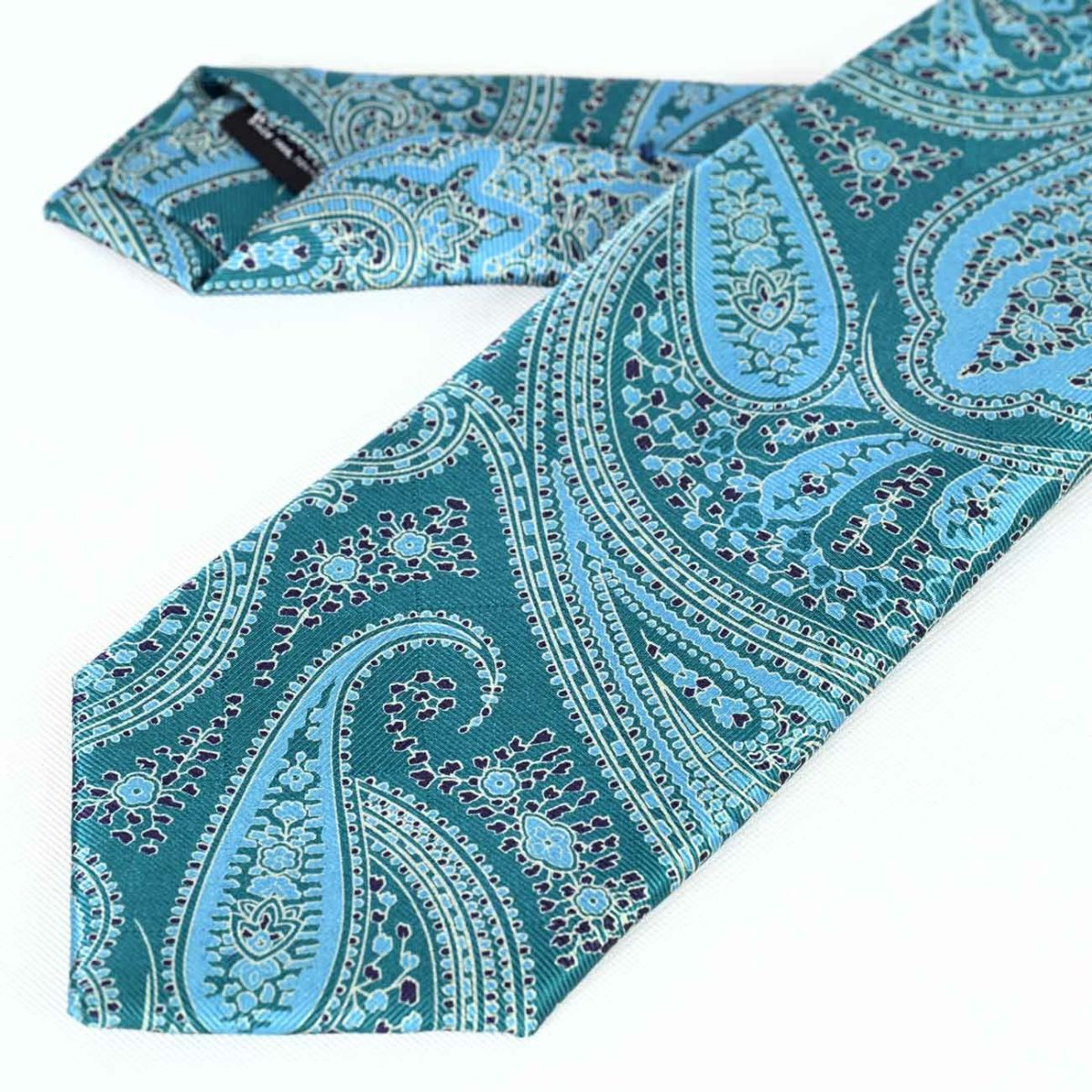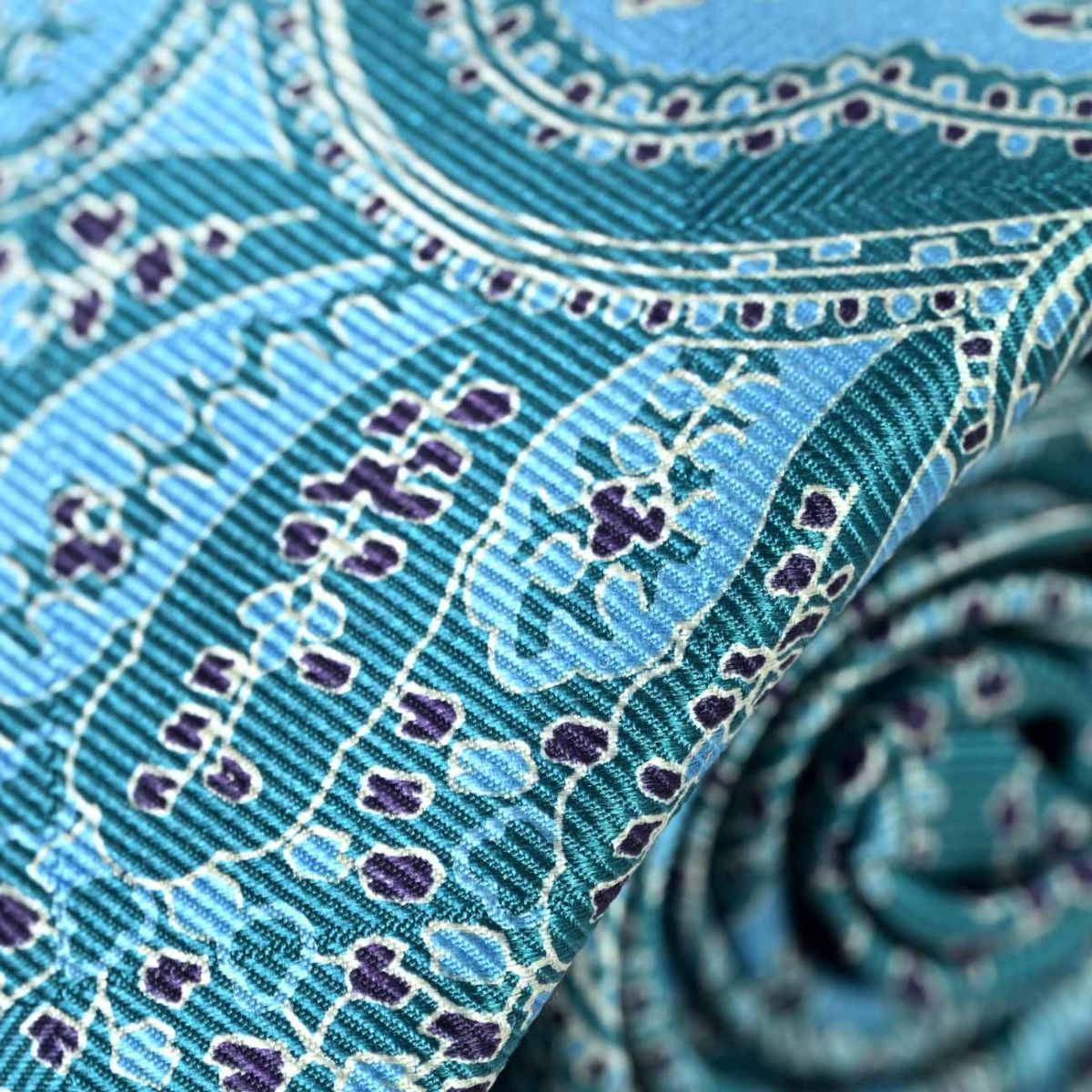 ROYTOUCHネクタイ プリントペイズリー・エメブルー