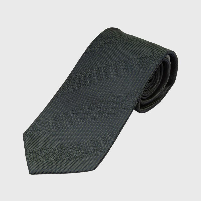 KINSHOKUネクタイ 西陣織ソリッド凹凸ストライプ・グリーン