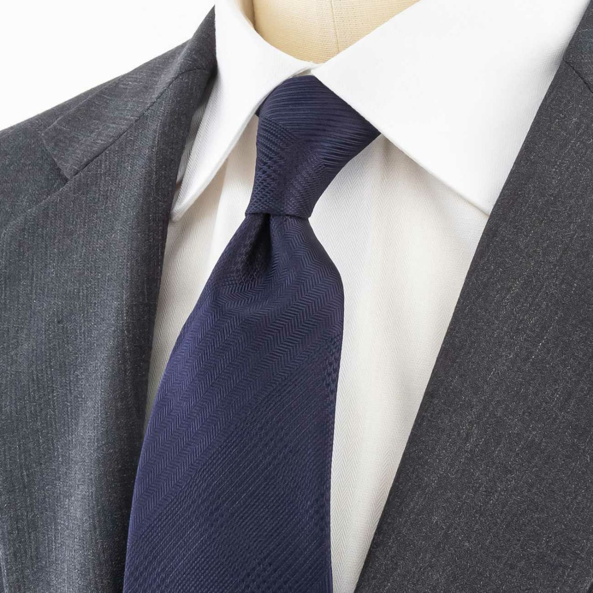 KINSHOKUネクタイ ソリッドグレンチェックストライプ・ネイビー