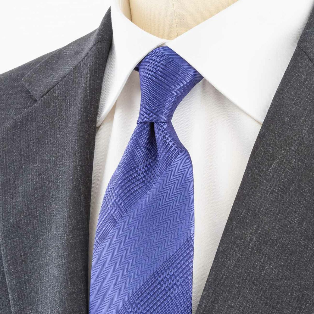 KINSHOKUネクタイ ソリッドグレンチェックストライプ・ブルー