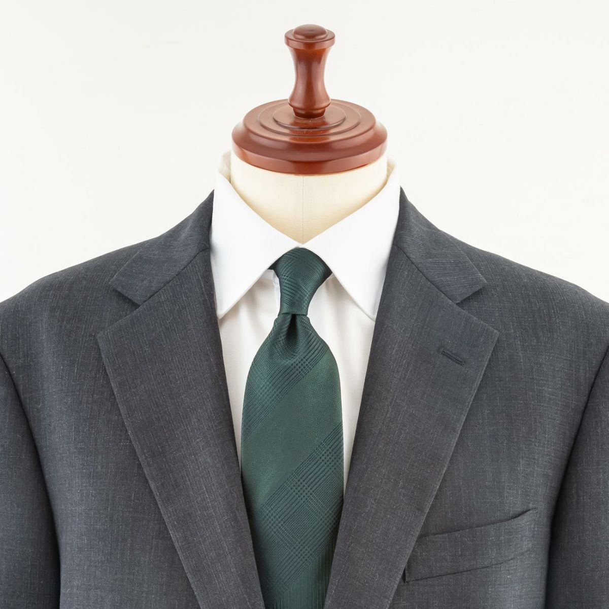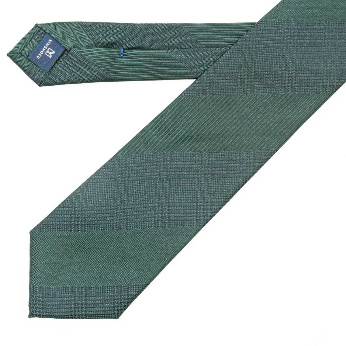 KINSHOKUネクタイ ソリッドグレンチェックストライプ・グリーン