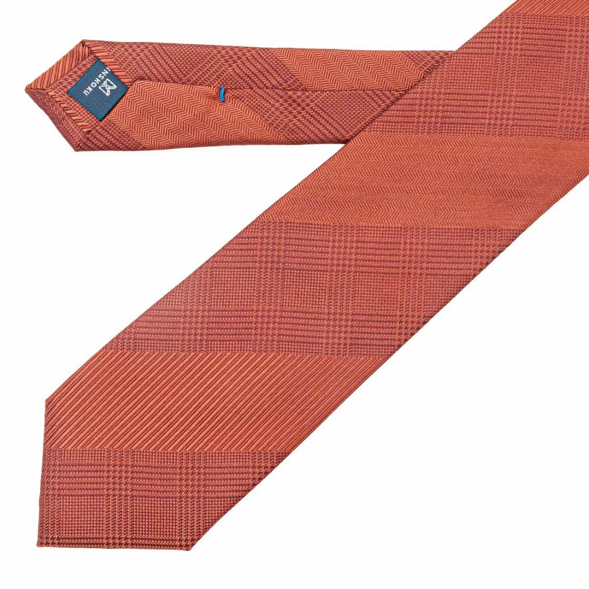 KINSHOKUネクタイ ソリッドグレンチェックストライプ・オレンジ