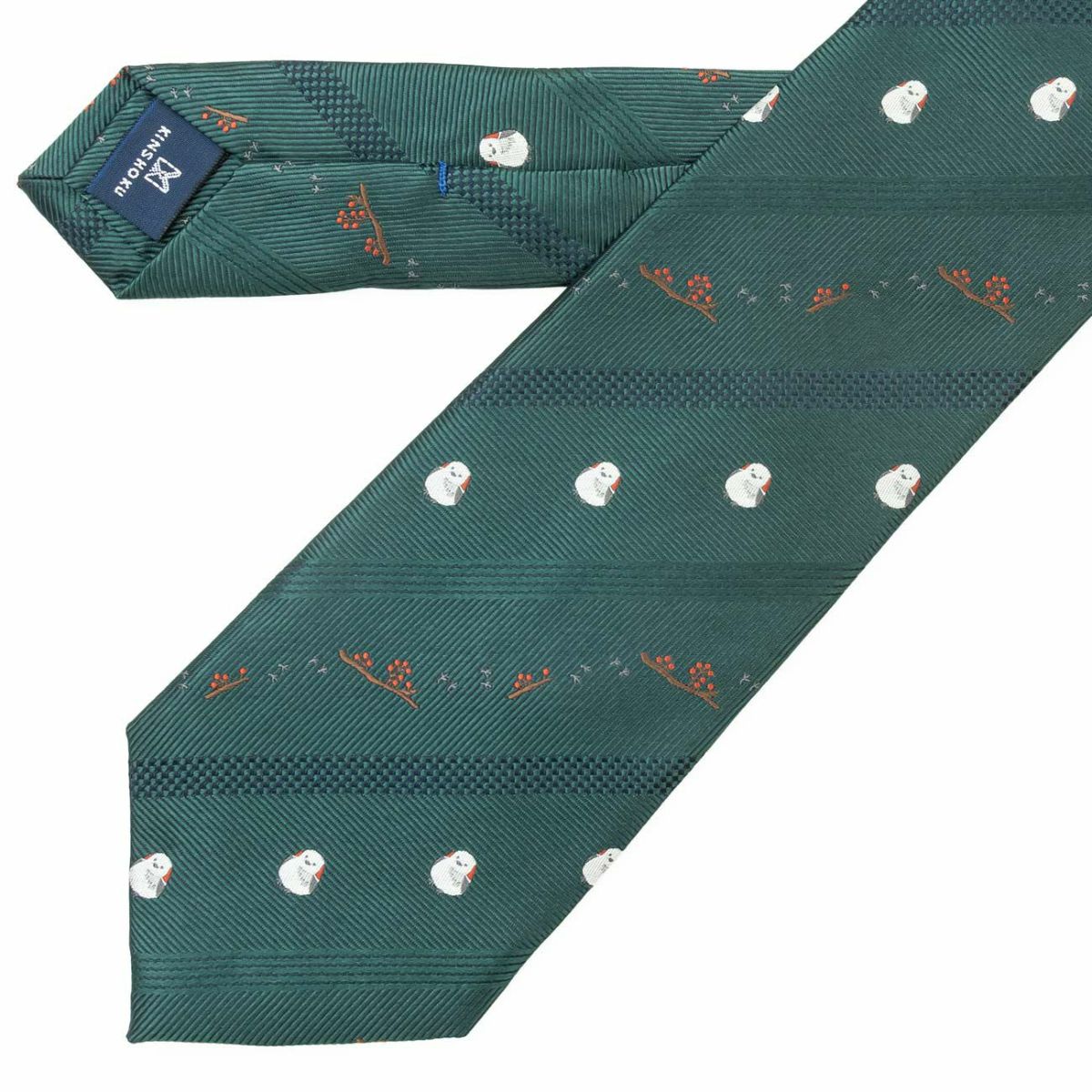 KINSHOKUネクタイ シマエナガモチーフストライプ・グリーン