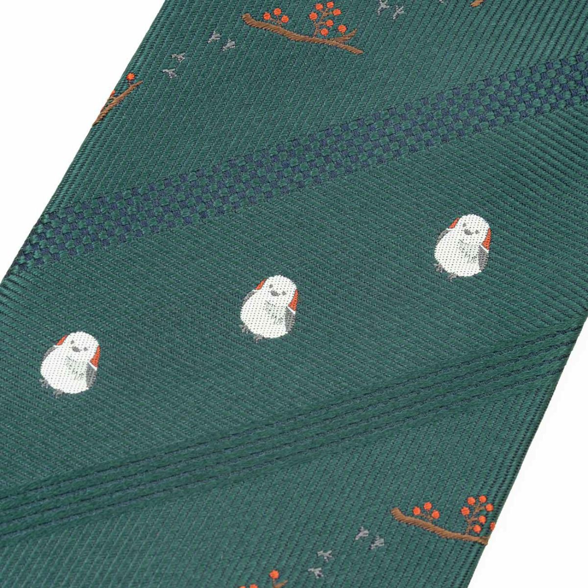 KINSHOKUネクタイ 白樺の森とシマエナガモチーフパネル・グリーン