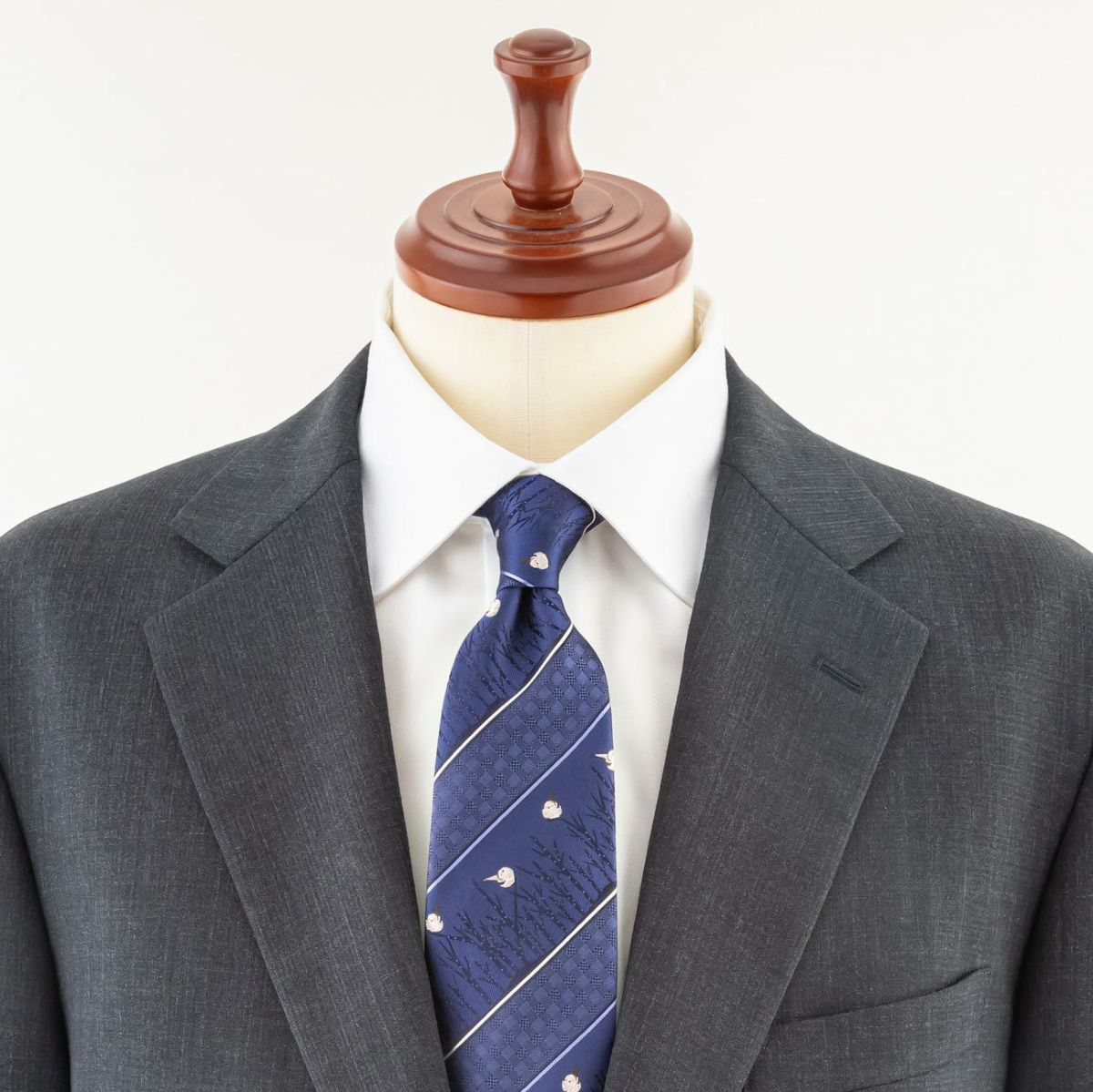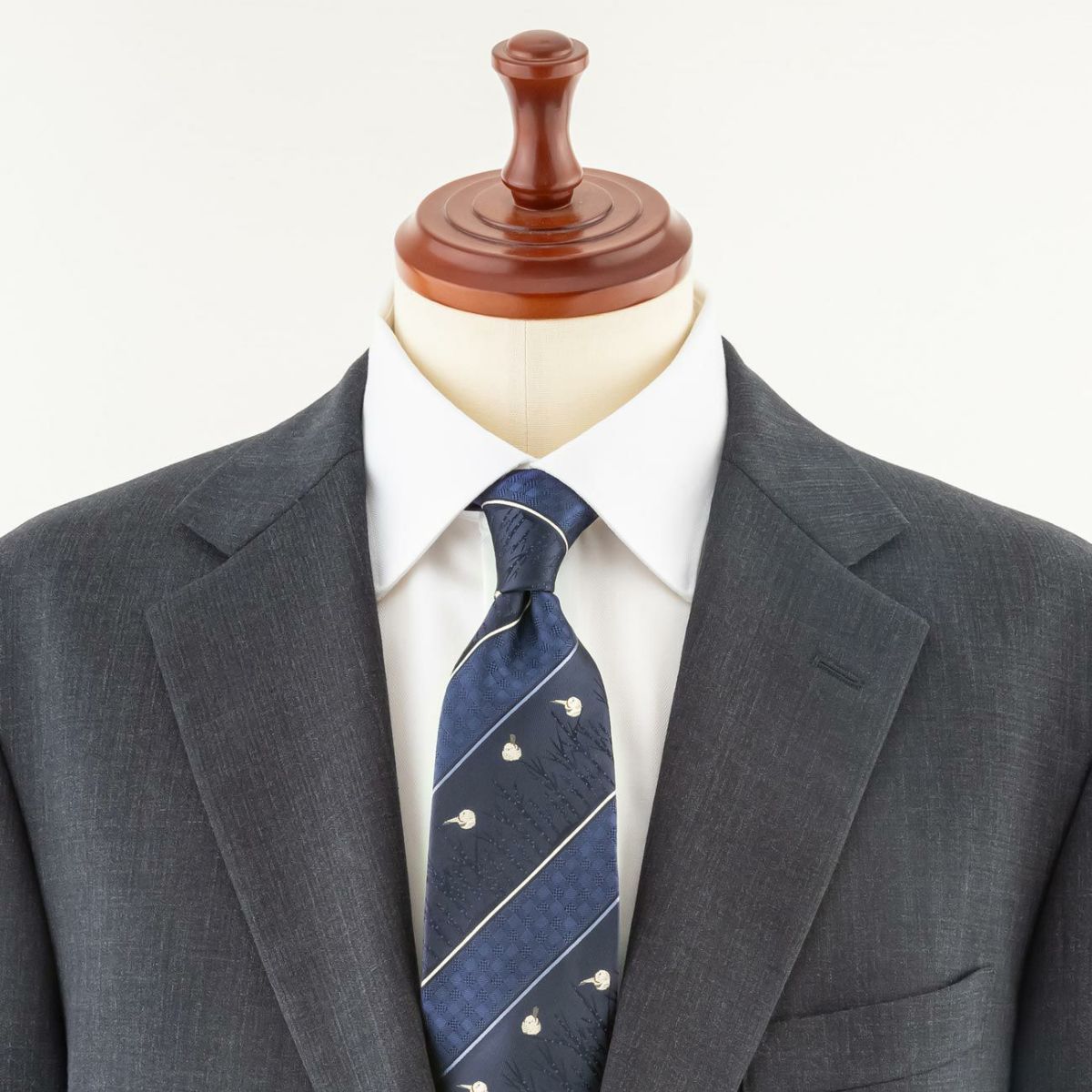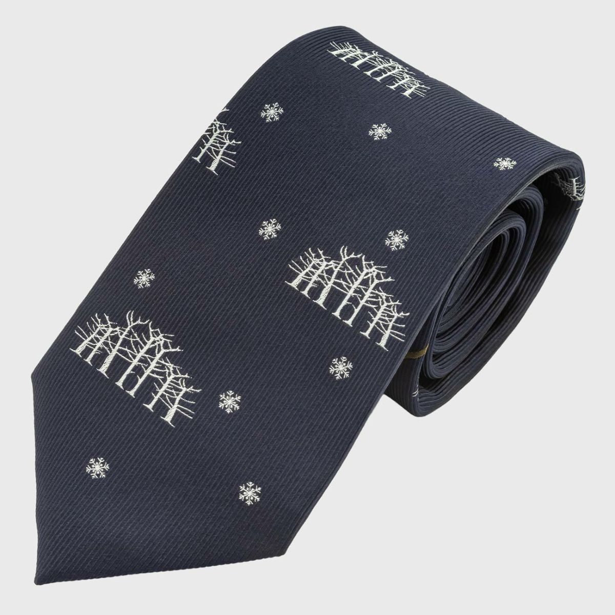 KINSHOKUネクタイ 白樺の森とシマエナガモチーフパネル・ネイビー