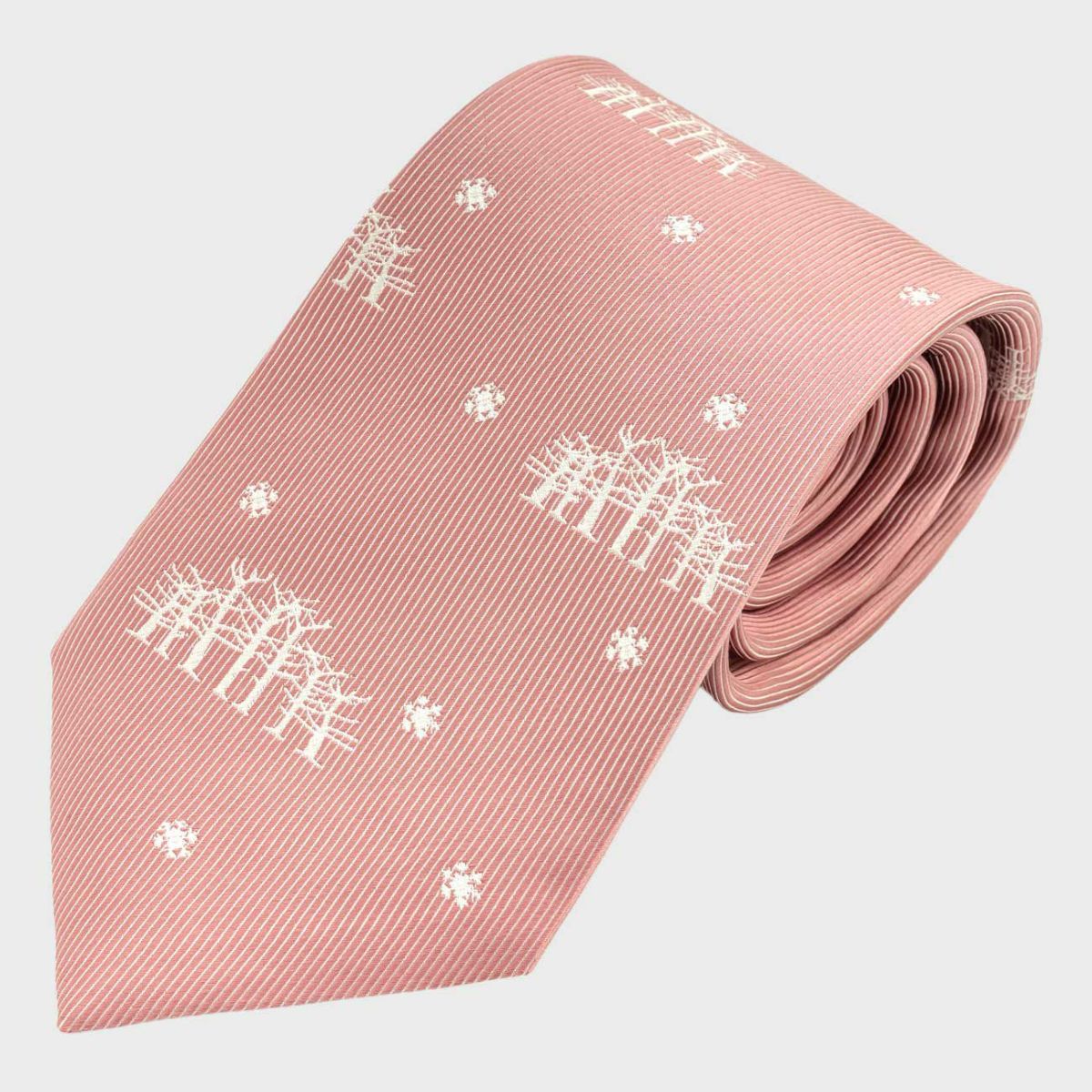KINSHOKUネクタイ 白樺の森とシマエナガモチーフパネル・ピンク