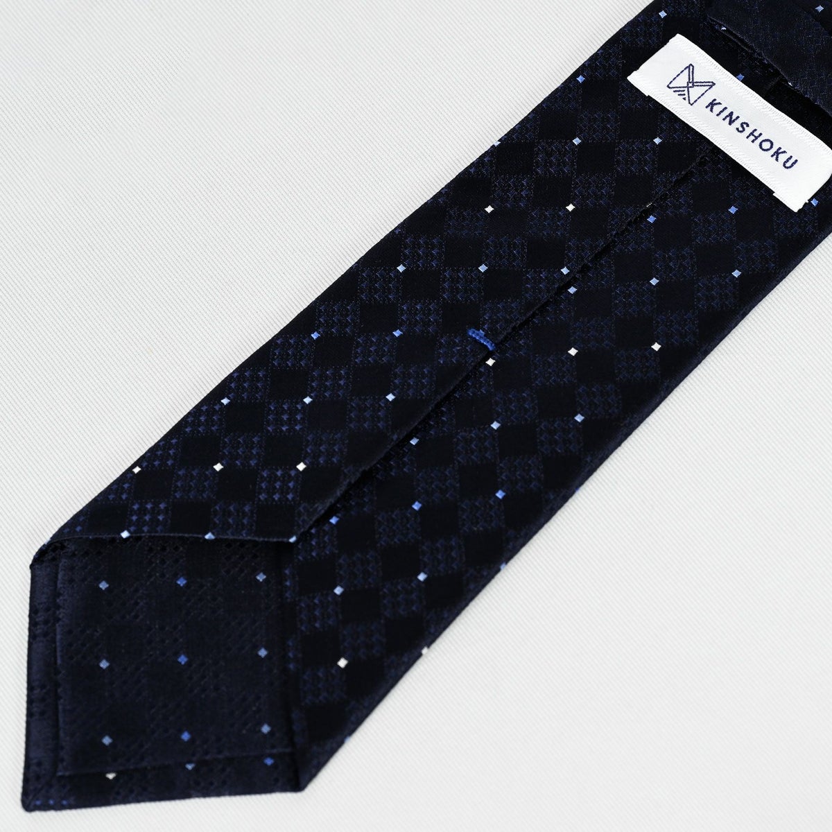 KINSHOKUネクタイ ソリッドチェック・ネイビー