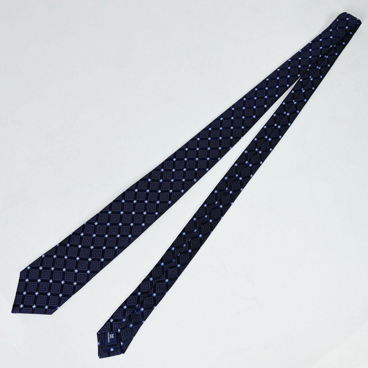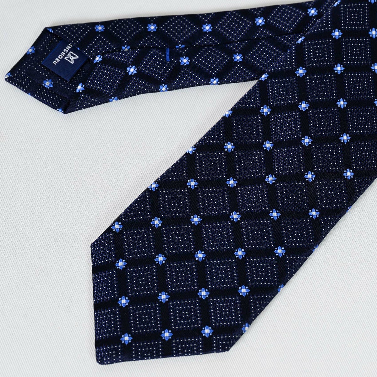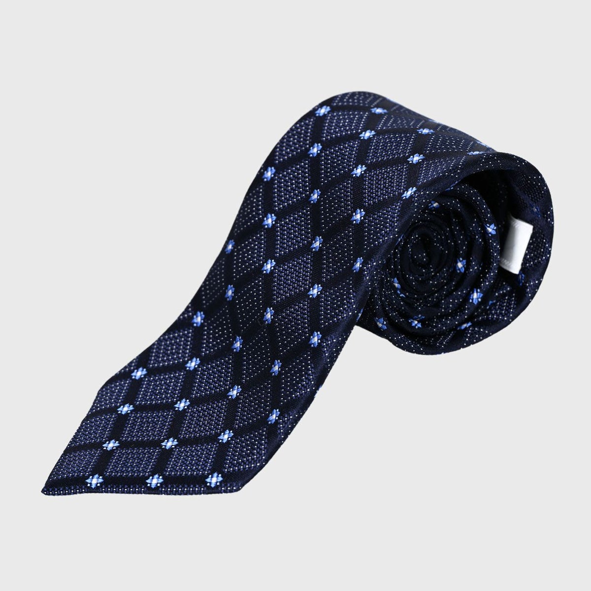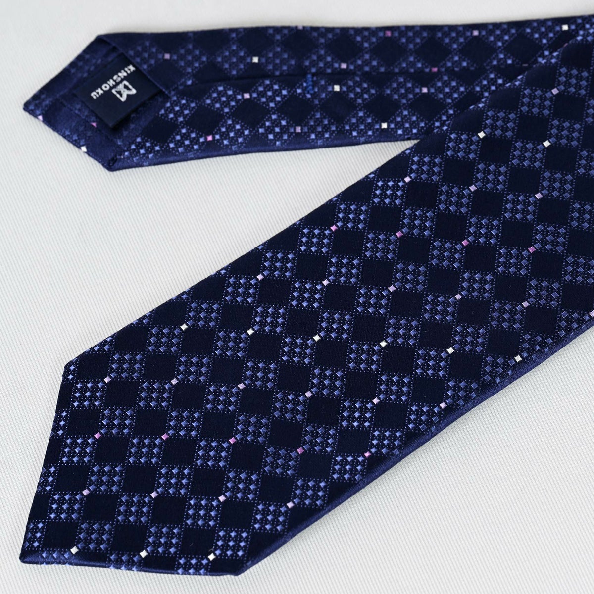 KINSHOKUネクタイ チェック小紋・ネイビー