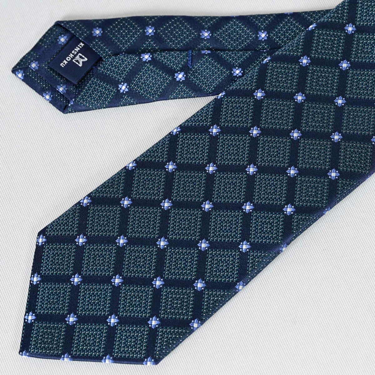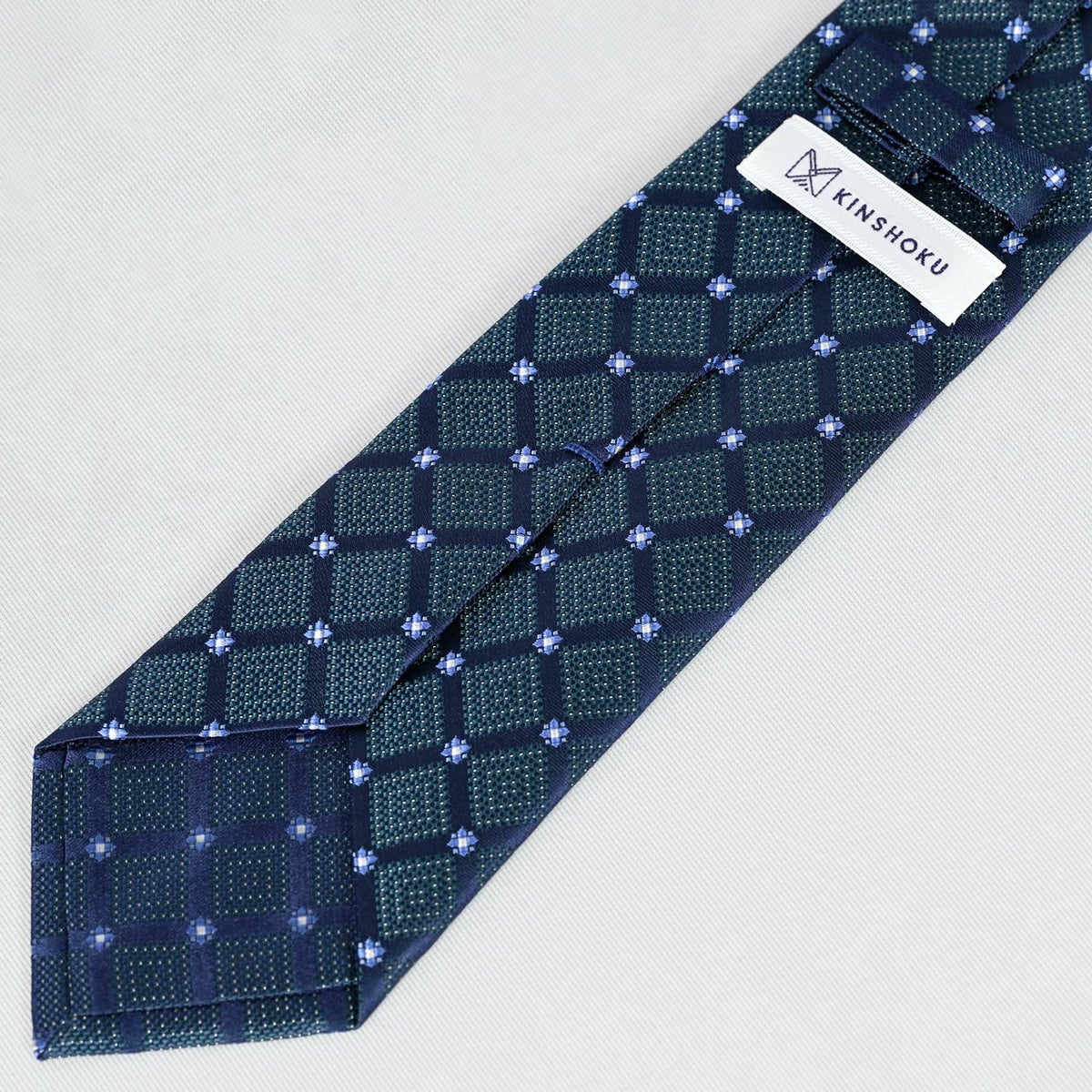 KINSHOKUネクタイ ソリッドチェック・エメブルー