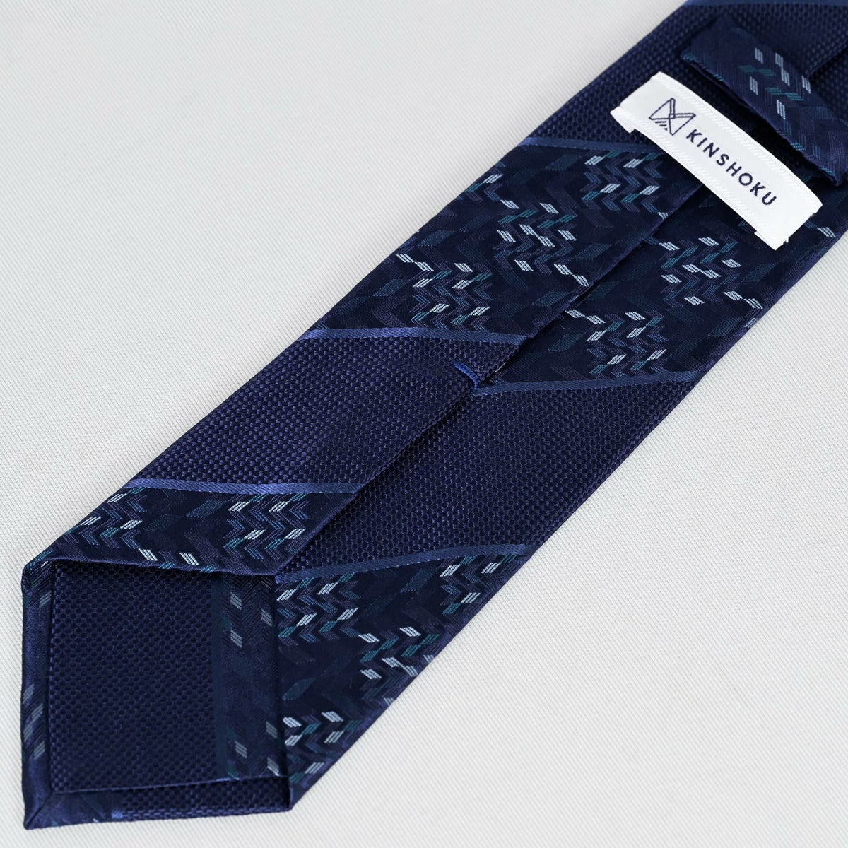 KINSHOKUネクタイ ソリッドパッチワーク・ネイビー