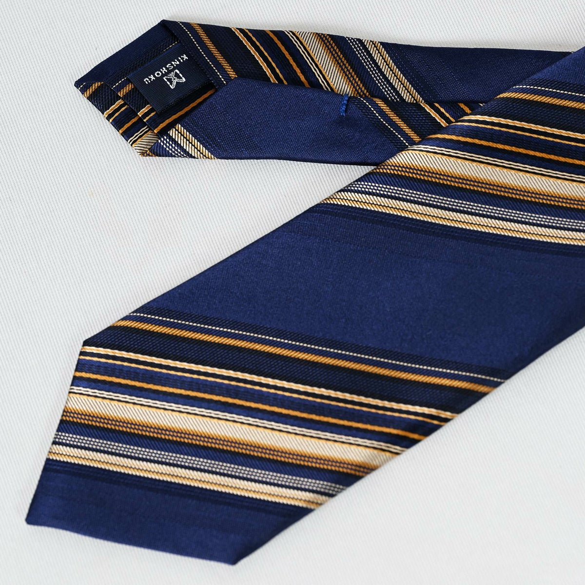 KINSHOKUネクタイ ビッグマルチストライプ・ネイビー/ゴールド