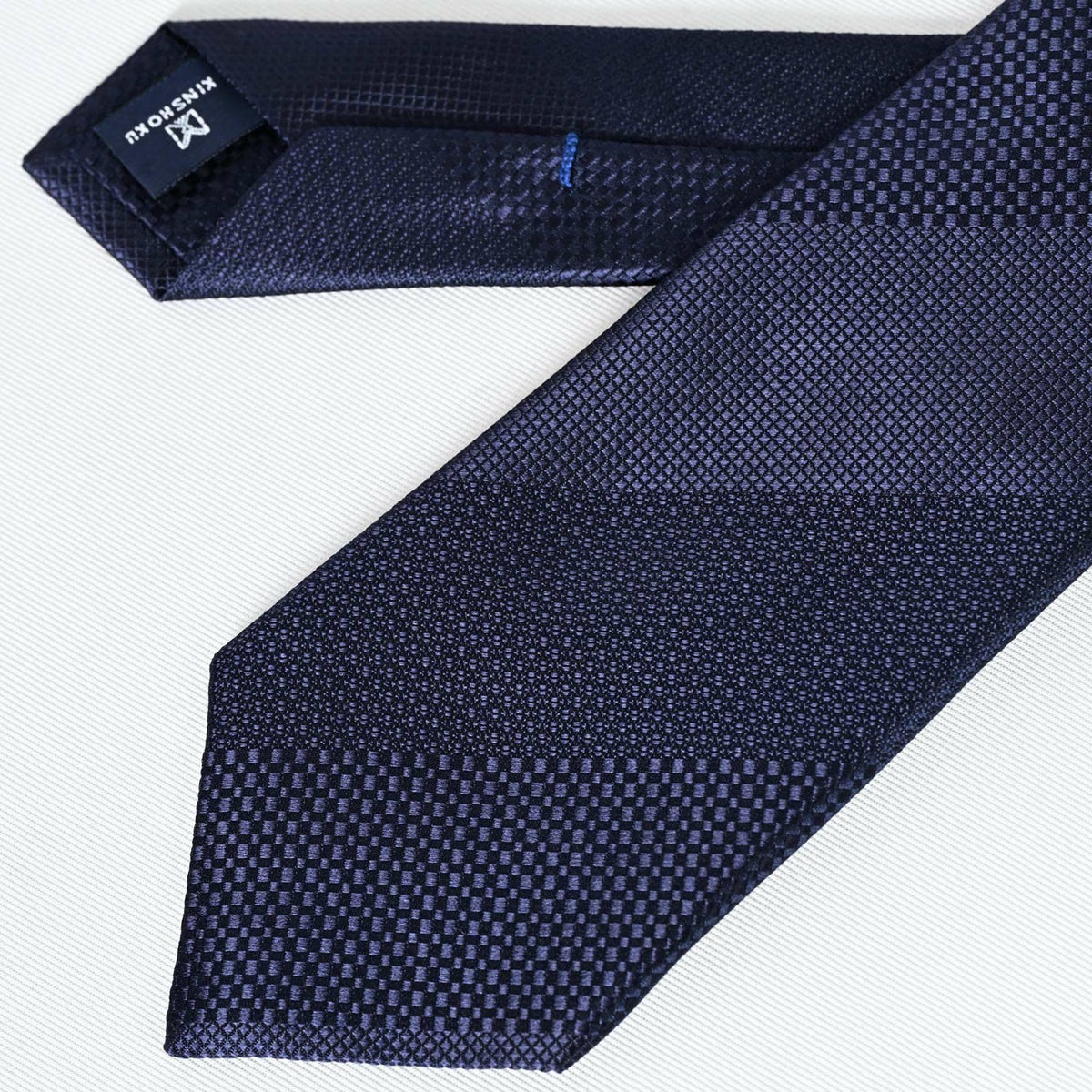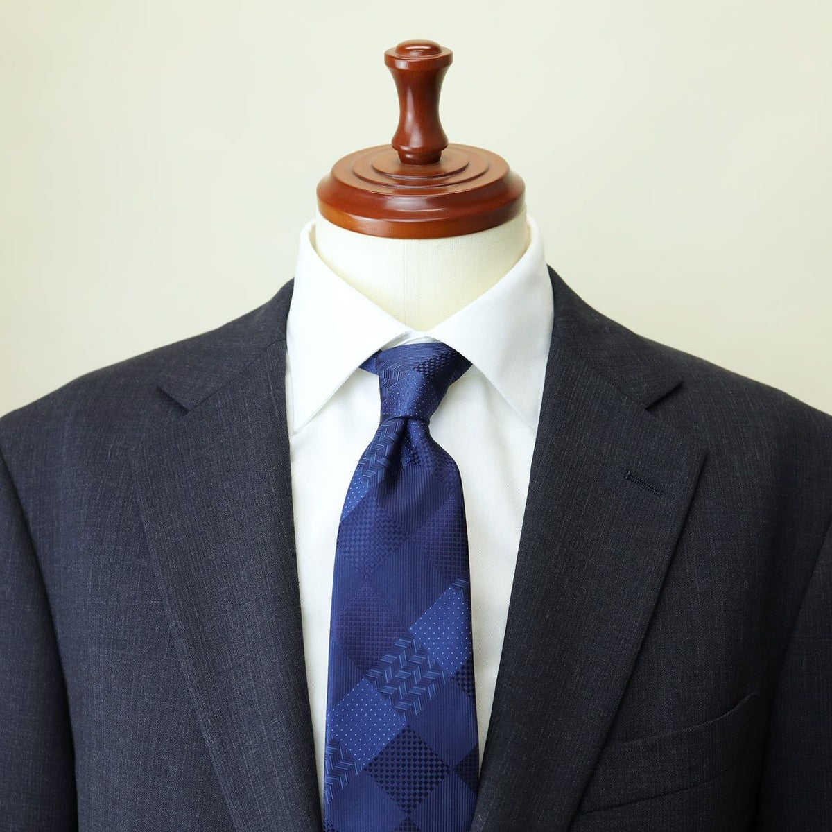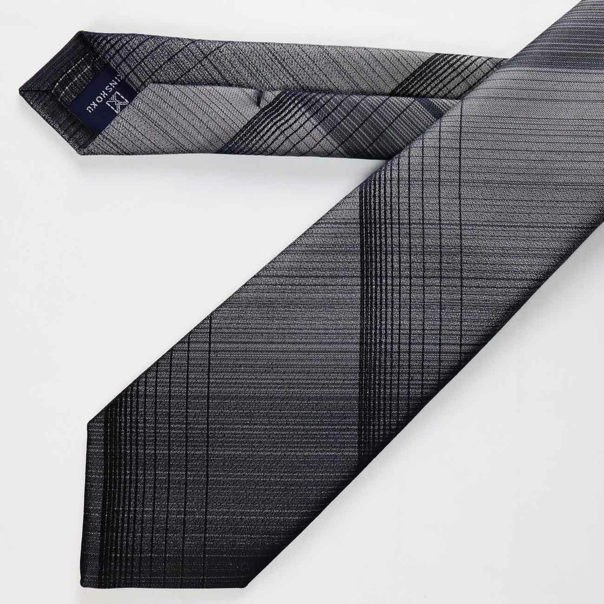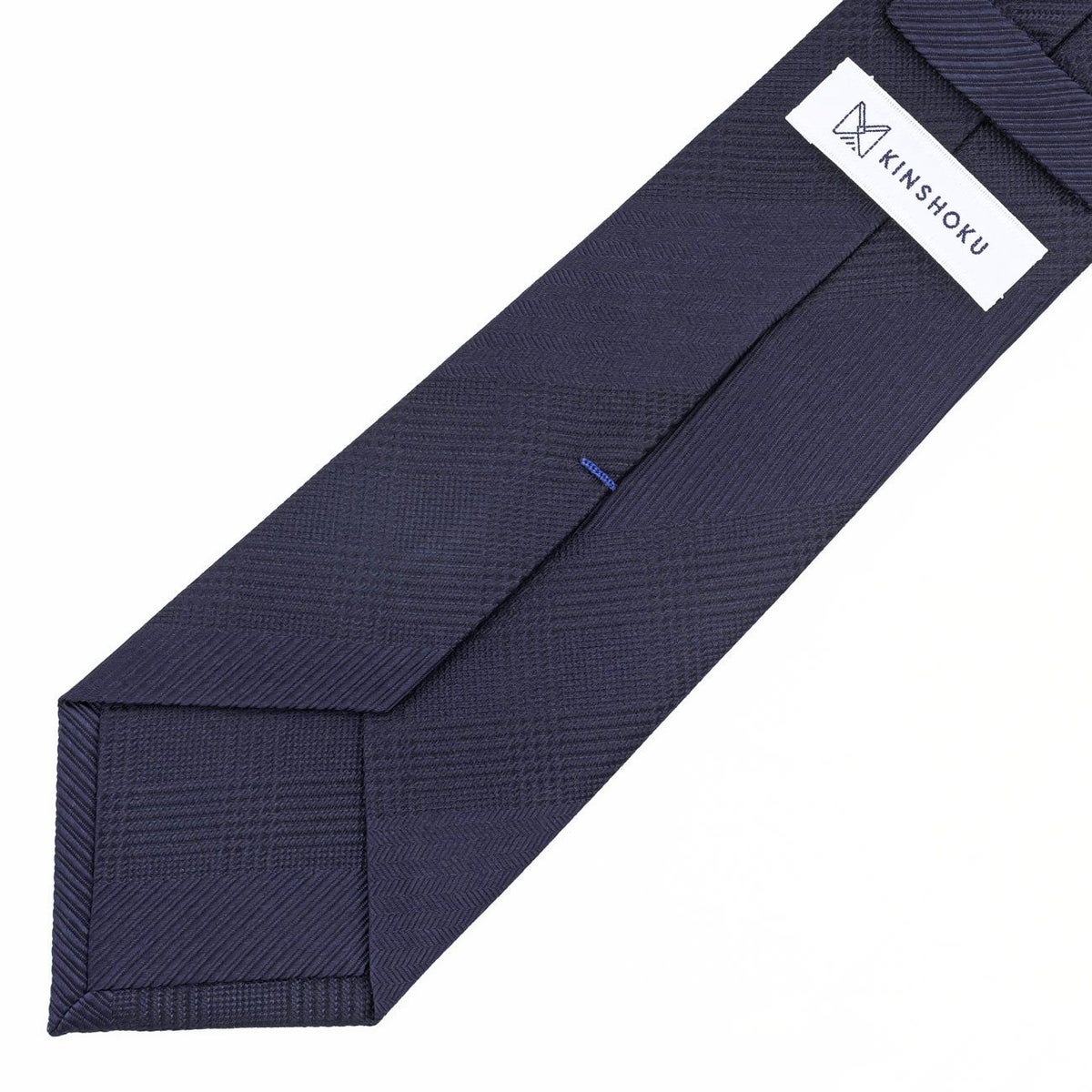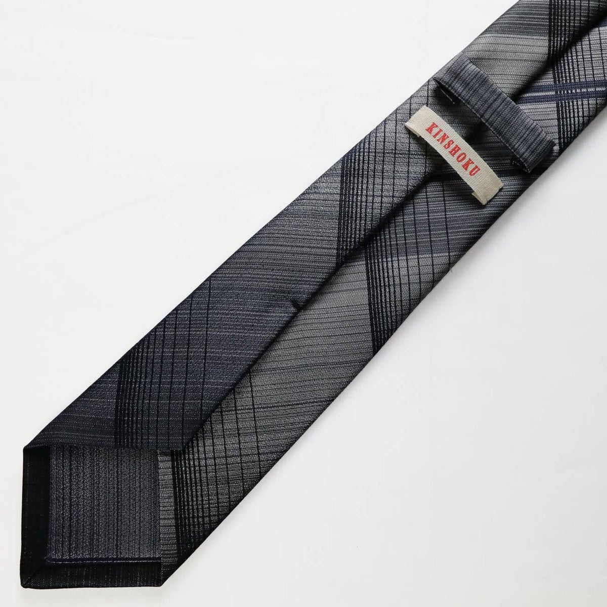 KINSHOKUネクタイ ソリッドグレンチェックストライプ・ネイビー