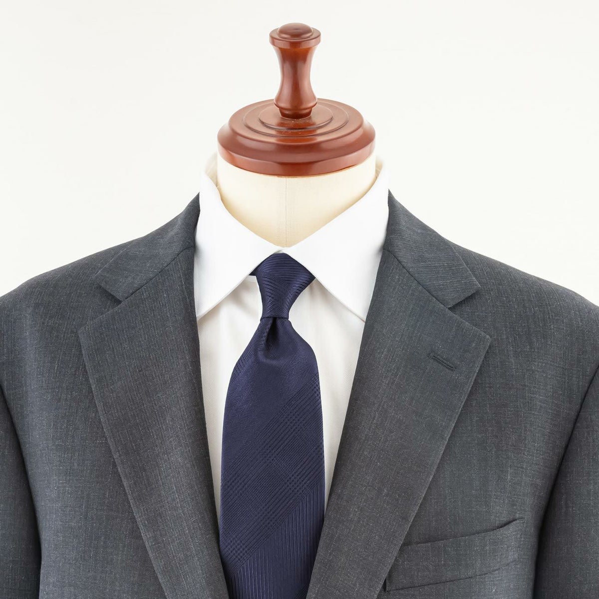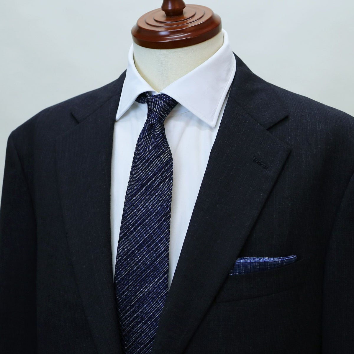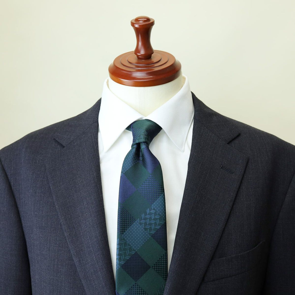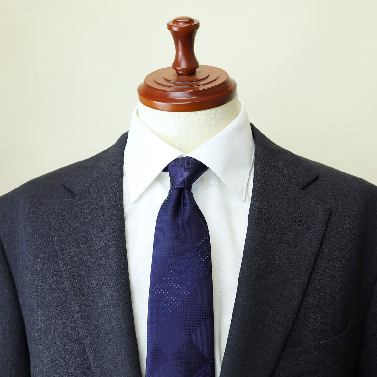 KINSHOKUネクタイ ソリッドグレンチェックストライプ・ネイビー