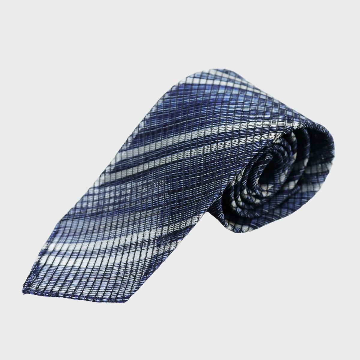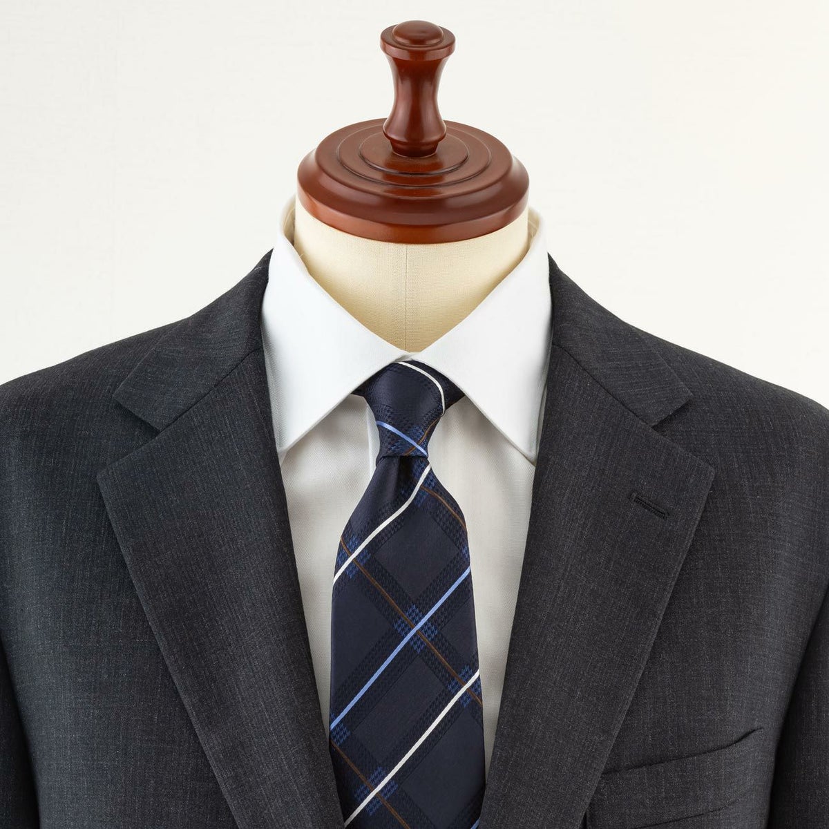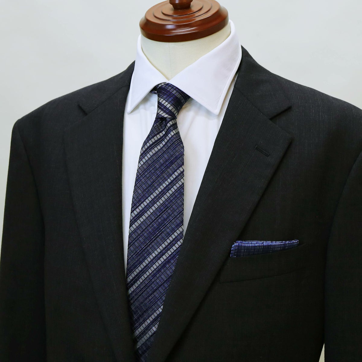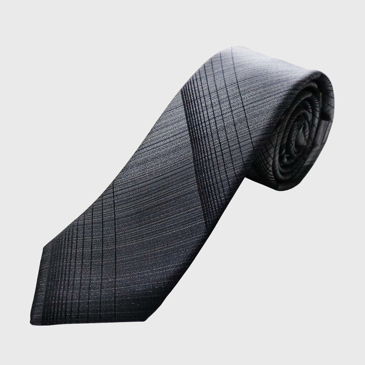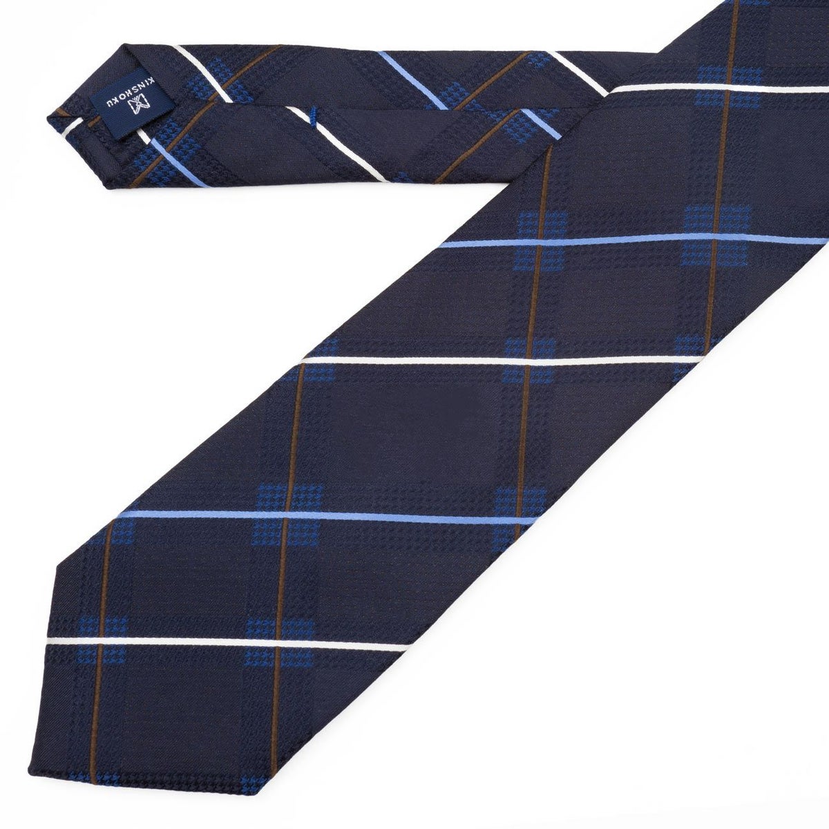 KINSHOKUネクタイ ソリッドグレンチェックストライプ・ネイビー