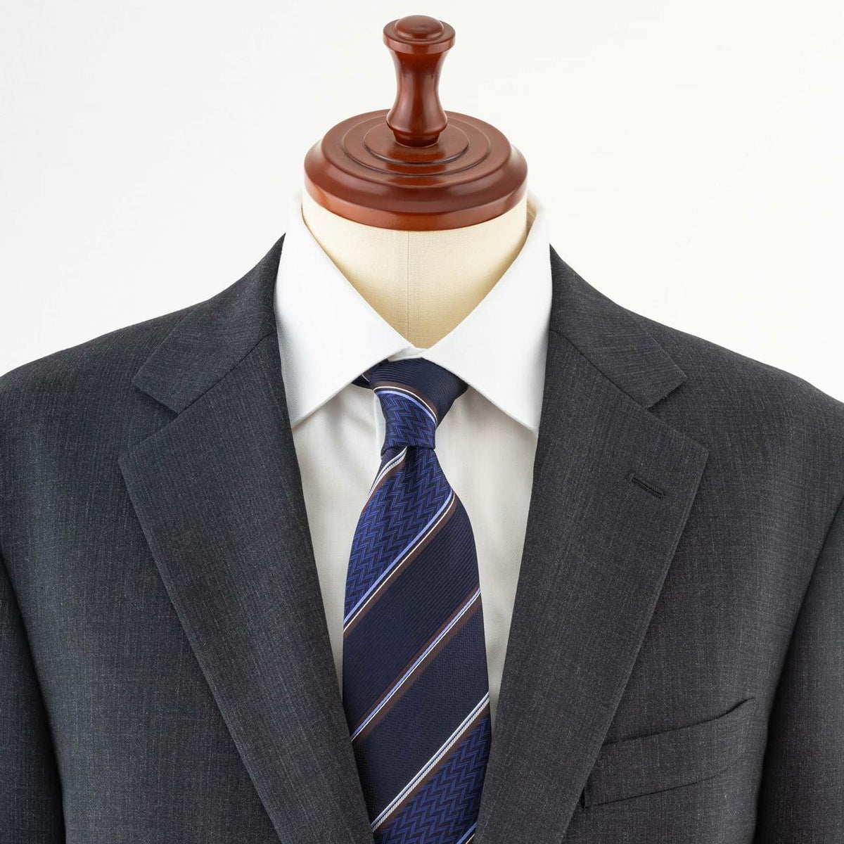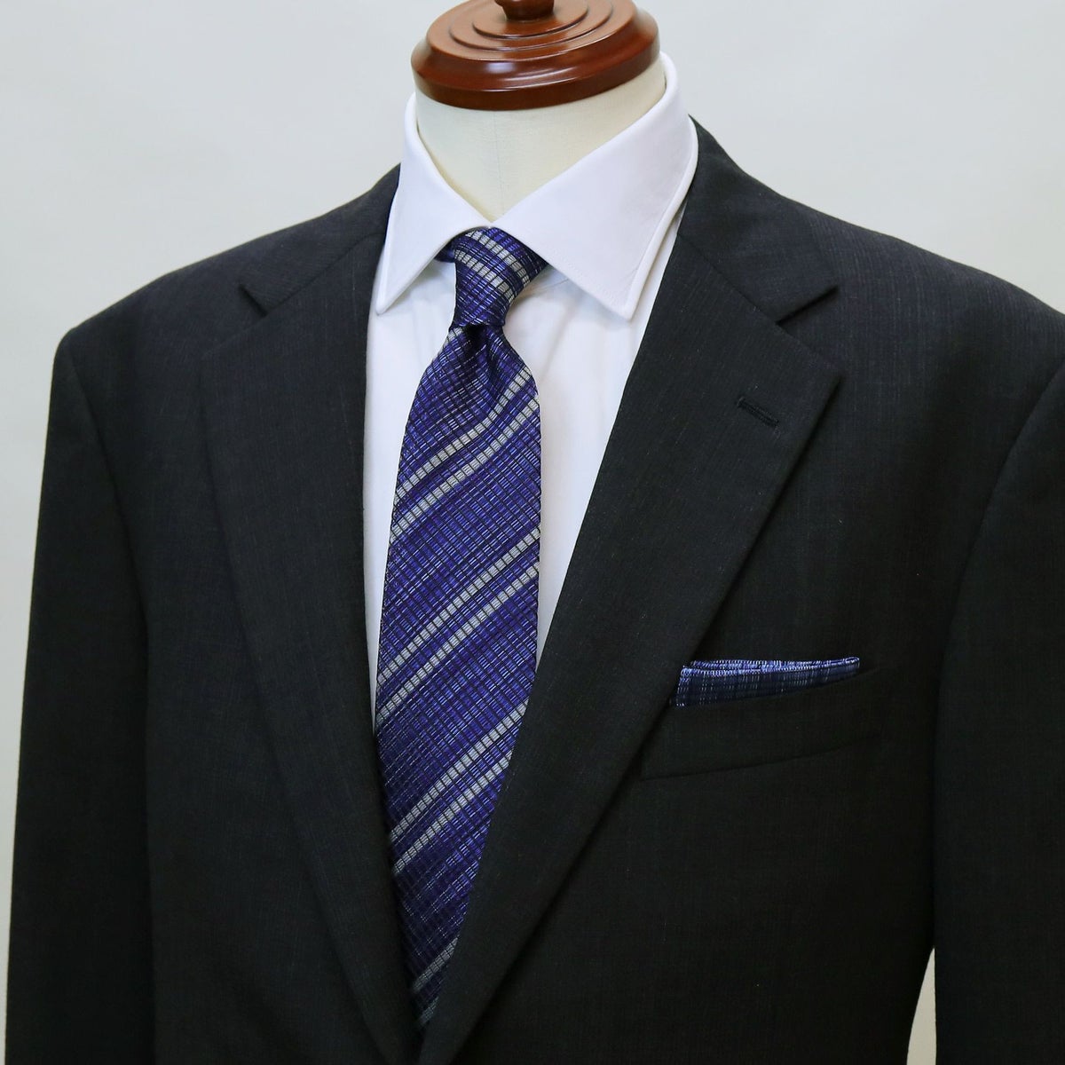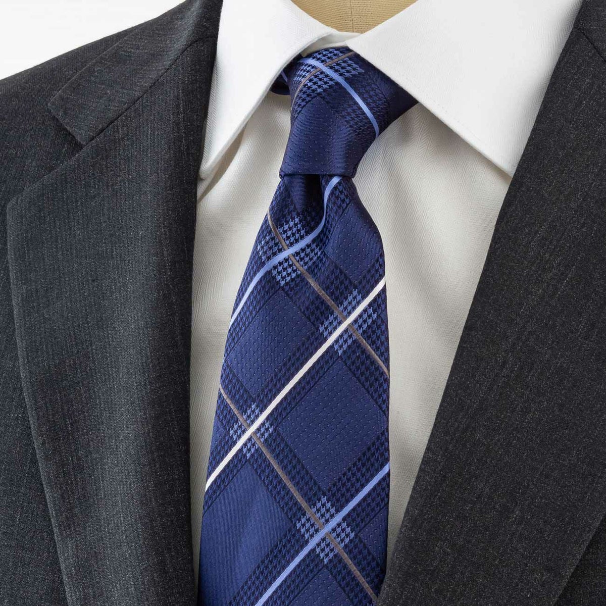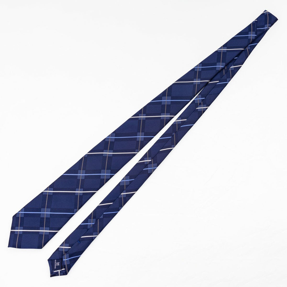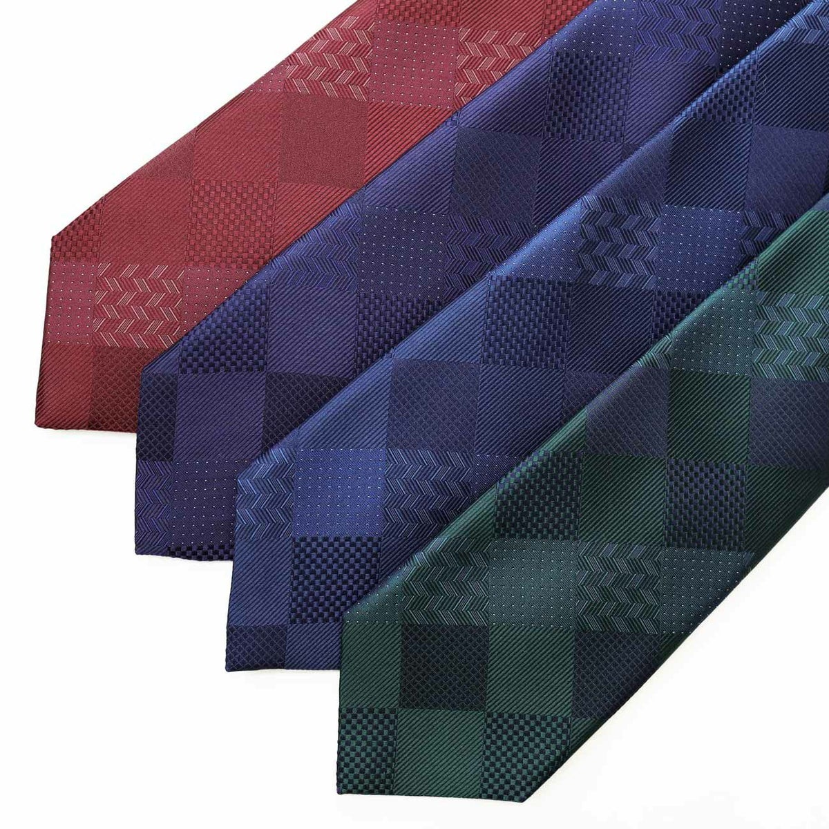 KINSHOKUネクタイ ソリッドグレンチェックストライプ・ネイビー